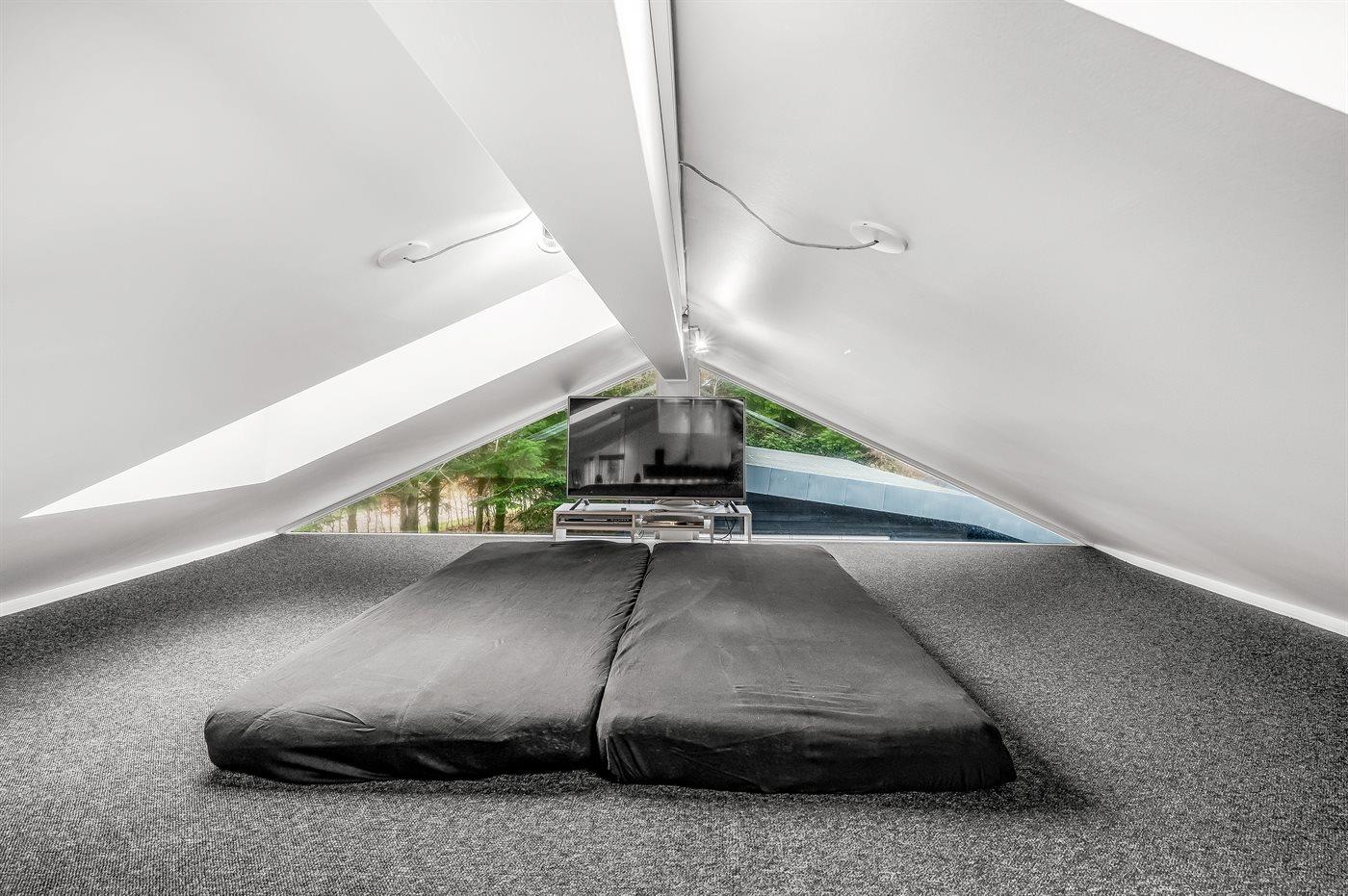 Die Schlafplätze verteilen sich auf 3 Schlafräume. 4 Schlafplätze in Doppelbetten. 2 Schlafplätze in Einzelbetten. 2 Schlafplätze auf Matratzen. 2 von diesen Schlafplätzen befinden sich im offenen Obergeschoss, wo sich ebenfalls ein Fernseher und ein DVD-Spieler befinden.