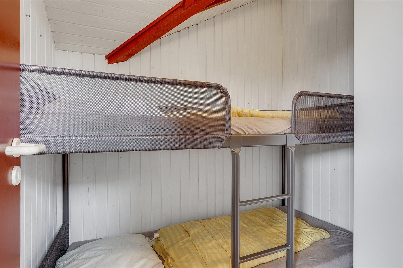 Die Schlafplätze verteilen sich auf 3 Schlafräume. 2 Schlafplätze in einem Doppelbett.1 Schlafplatz in einem Einzelbett. 2 Schlafplätze in einem Etagenbett.