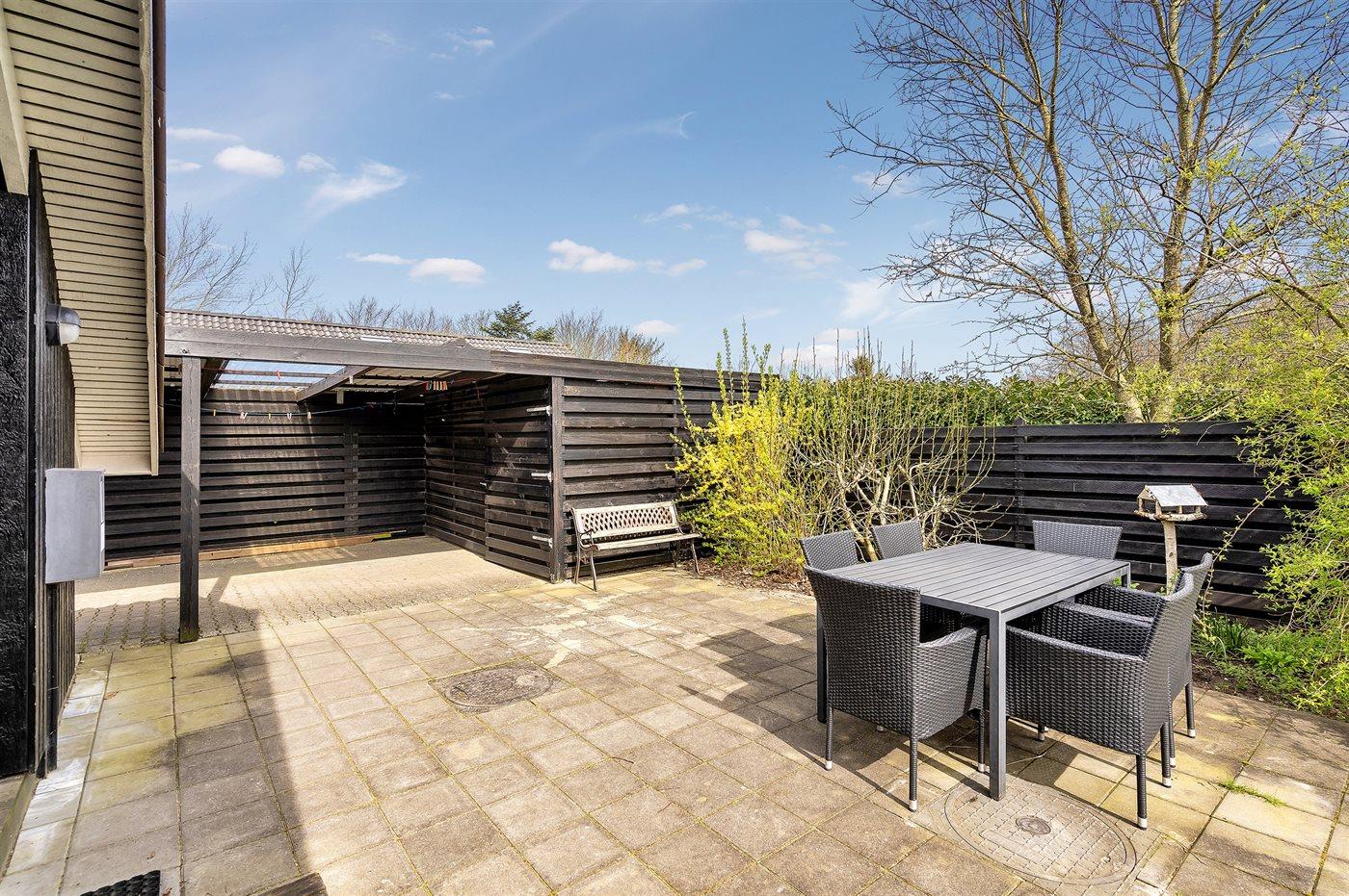 Die Ferienunterkunft liegt auf einem 825 m² großen Naturgrundstück. Die Entfernung zum Meer beträgt 6000 m. Die Entfernung zum Fjord beträgt 250 m. Es steht ein offenes Terrassenareal zur Verfügung. Es steht ein Carport zur Verfügung. Parkplatz auf dem Grundstück.