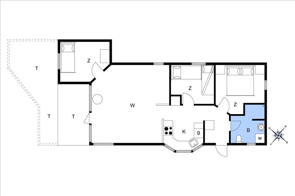 Die sechs Schlafplätze deines Mietobjektes verteilen sich auf drei Schlafräume, die allesamt mit komfortablen Betten und Schrankfläche ausgestattet sind. In einem der Schlafräume erwartet dich ein Doppelbett. Das Doppelbett im zweiten Raum ist bedeutend schmaler. Zwei Einzelbetten stehen im dritten Schlafraum bereit. Das ansprechende Badezimmer umfasst eine Duschnische und eine Waschmaschine.