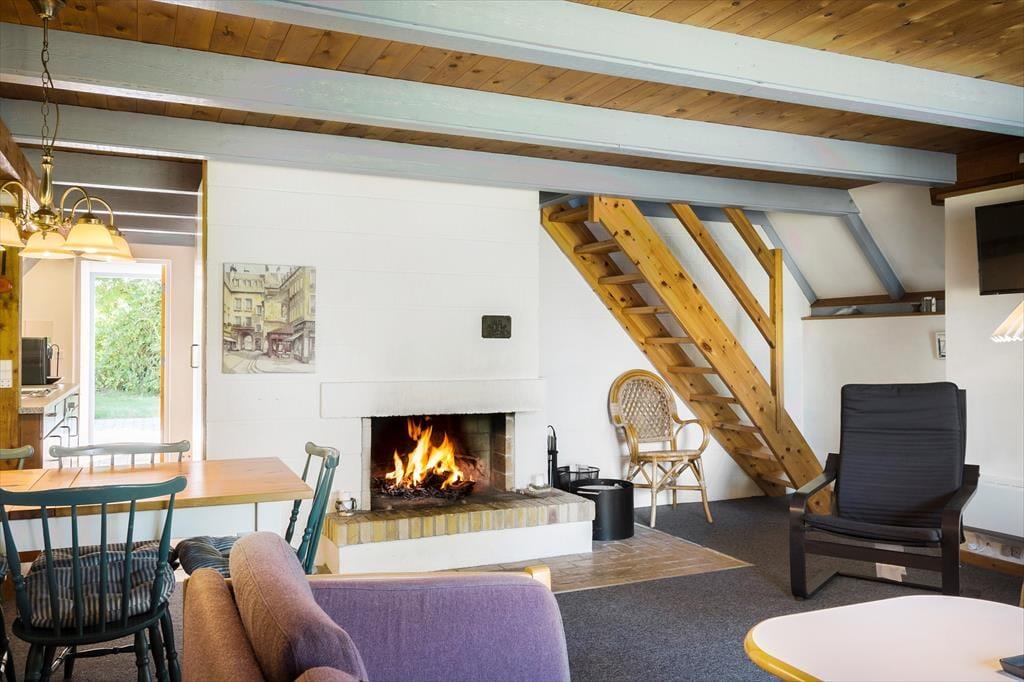 Eine Internetverbindung ist vorhanden. Gleiches gilt auch für einen Fernseher mit Chromecast, der es Ihnen ermöglicht, Filme und Serien Ihres eigenen privaten Streaminganbieters direkt auf den Fernseher zu übertragen. Die Schlafplätze verteilen sich auf ein Doppelbett im Erdgeschoss und auf ein Doppelbett sowie zwei Einzelbetten im ersten Stockwerk. Das Badezimmer ist mit einer Dusche ausgestattet.