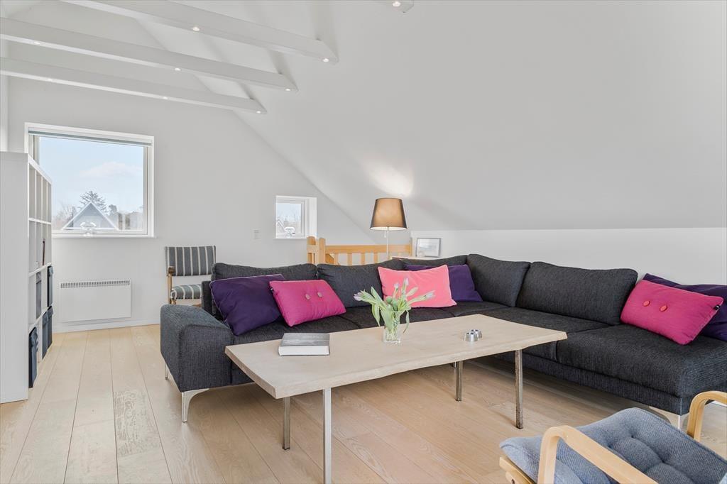 Dieses schön helle und einladende Ferienhaus erstreckt sich über zwei Stockwerke. Es beinhaltet zwei Badezimmer und bietet Platz für Ihre gesamte Familie oder all Ihre guten Freunde. Die attraktive Aussicht auf Samsøs Westküste macht dieses Mietobjekt zu etwas ganz Besonderem.