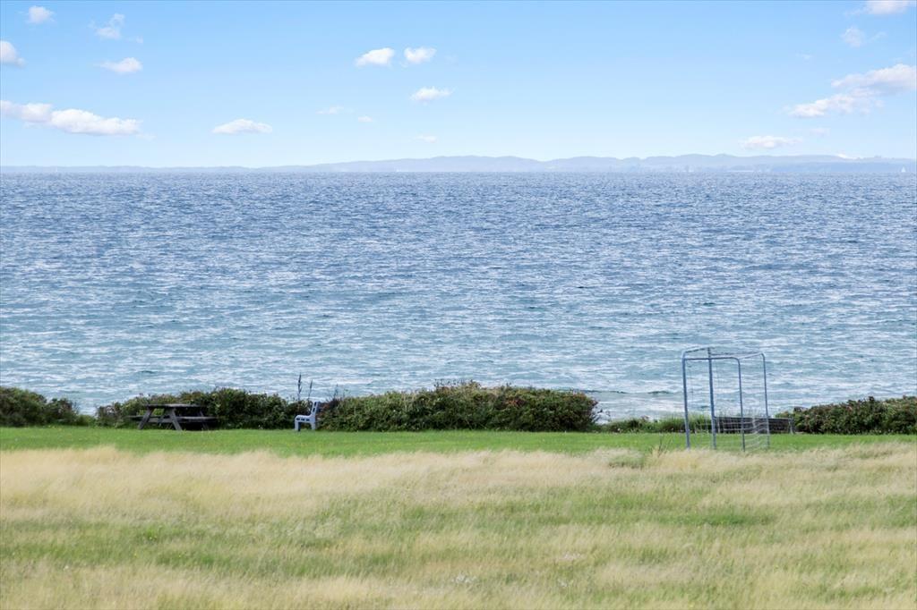 Vor dem Nebengebäude steht Ihnen eine große Terrasse zur Verfügung. Diese wird von einem Zaun, der die Terrasse optisch vom offenen Grundstück trennt, schön eingerahmt. Zwischen dem Grundstück und dem Meer verläuft ein kleiner Schotterweg. Hinter dem Schotterweg erstreckt sich ein Gemeinschaftsareal, dass Sie beispielsweise gut für das ein oder andere Fußballspiel nutzen können.
