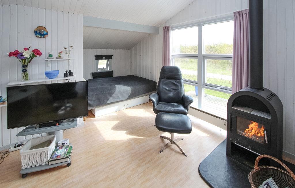 Hier, in der Nähe von Strand und Meer, wird jedes Familienmitglied auf seine Kosten kommen. Fühlen Sie sich in den gemütlich eingerichteten Zimmern wie zu Hause und genießen Sie die Zeit mit der Familie. Durch die großen Fenster haben Sie einen schönen Blick auf die attraktive Umgebung. Entspannen Sie sich in der Nische mit einem guten Buch, während im Holzofen ein knisterndes Feuer brennt.
