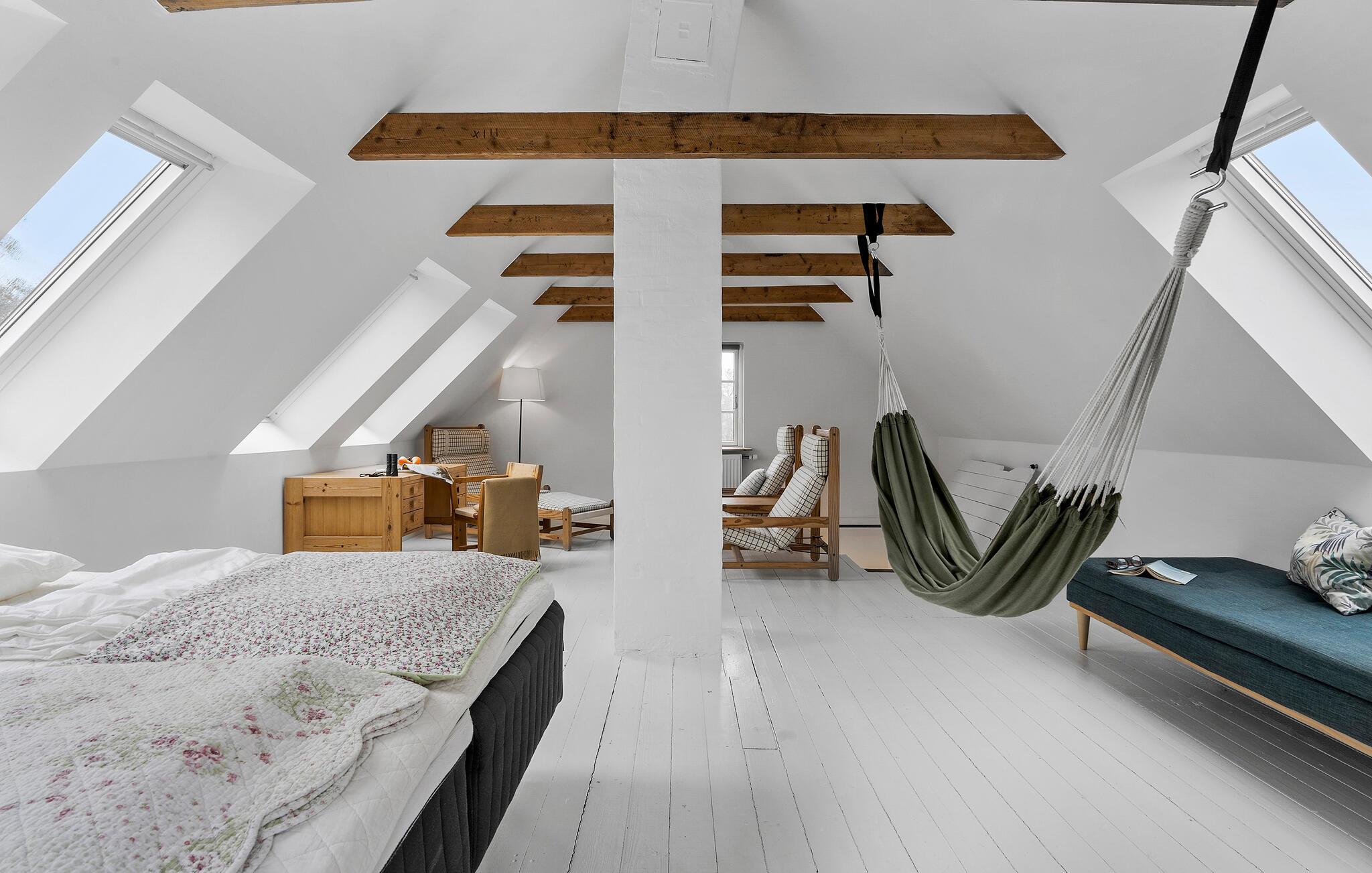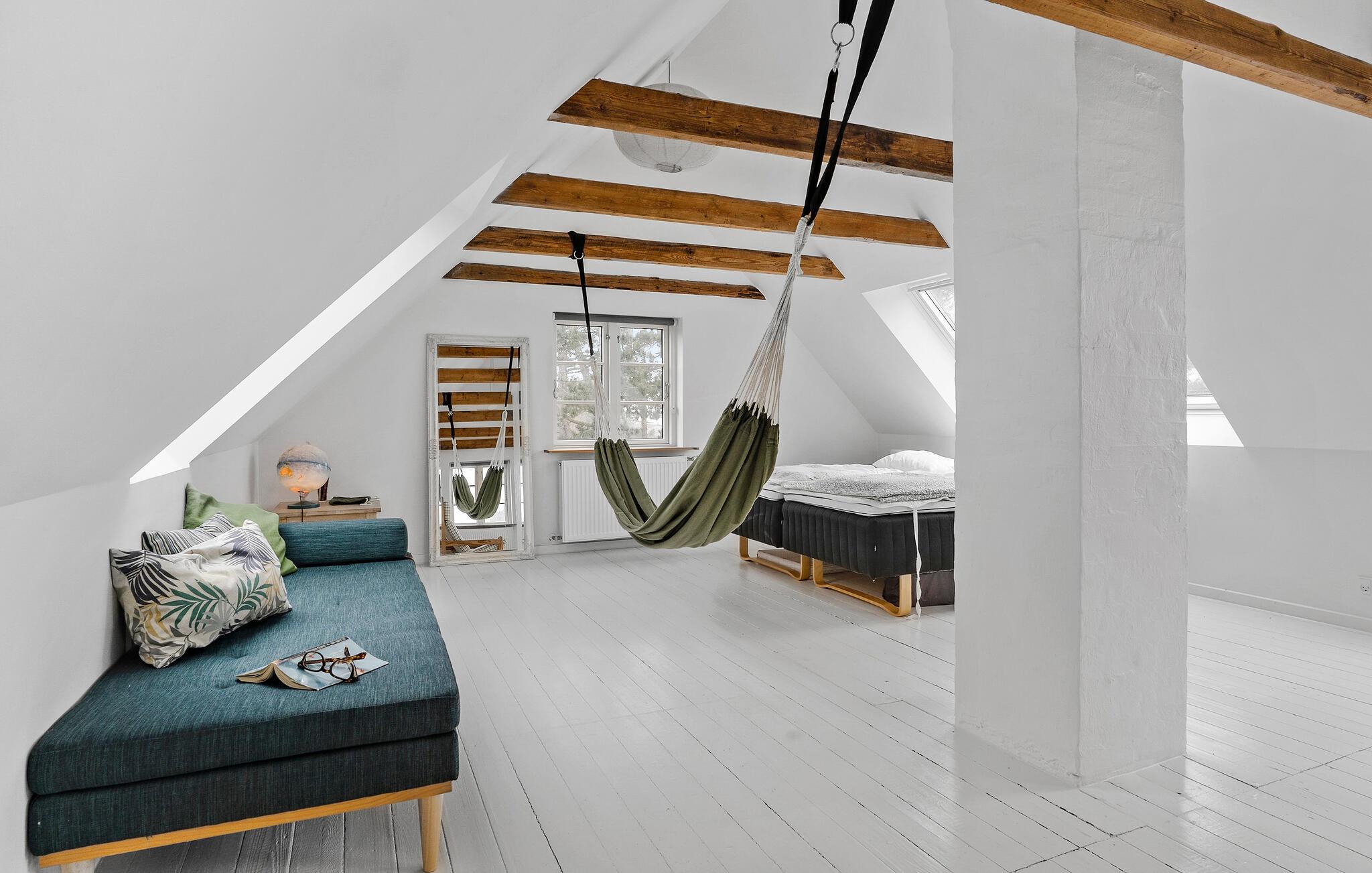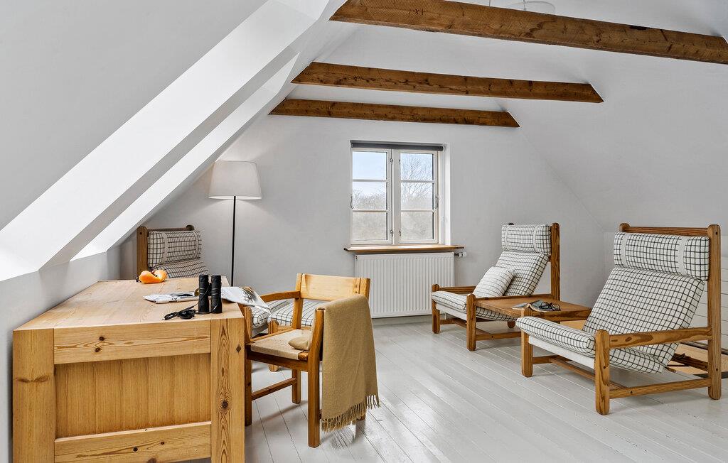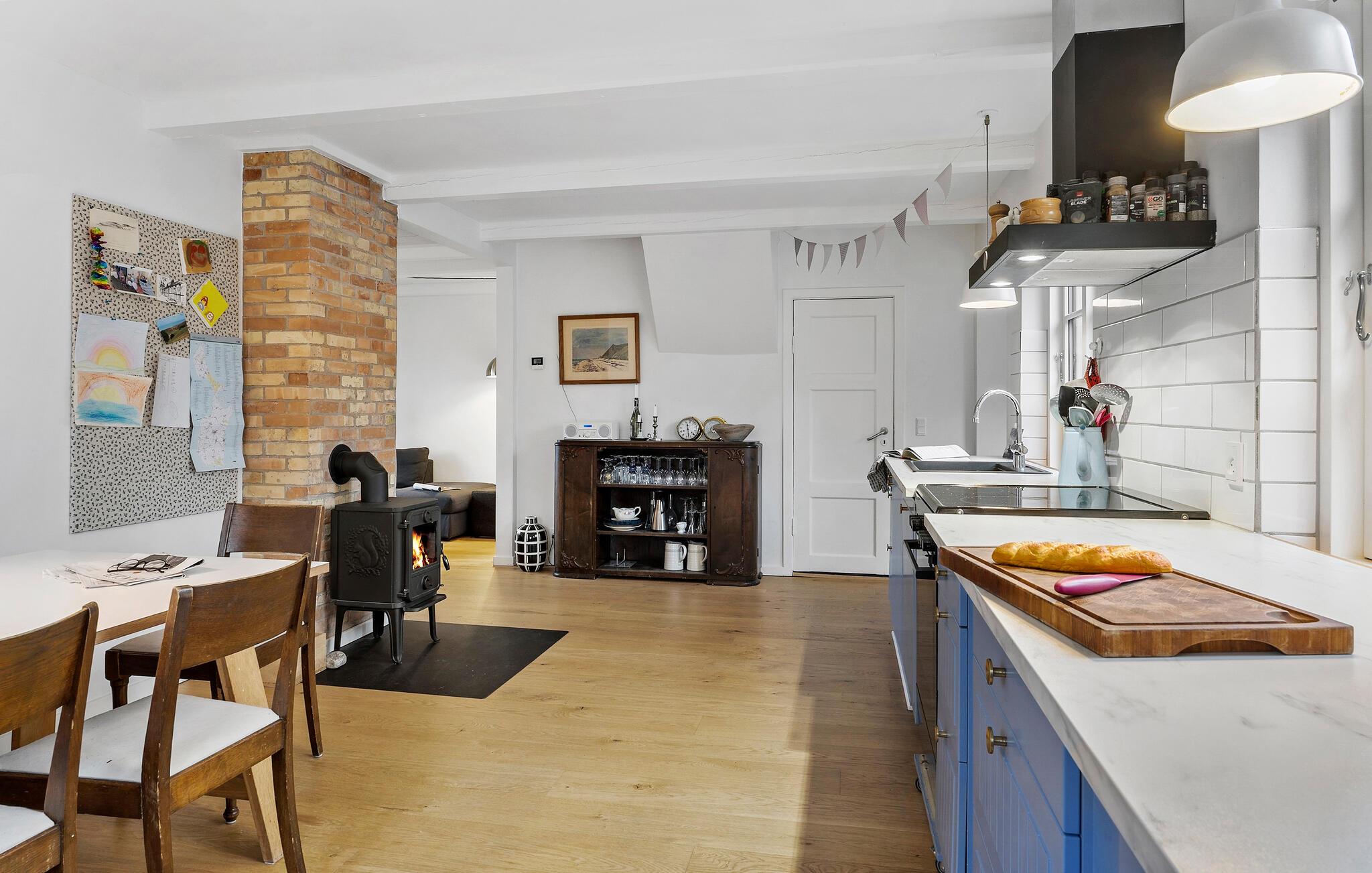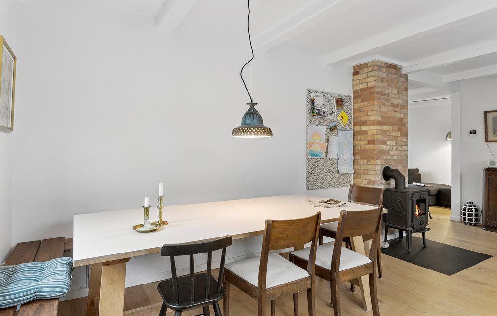 Umgeben von einer malerischen Landschaft bietet dieses Haus in Sælvig auf der bezaubernden Insel Samsø die ideale Kombination aus Komfort und Nähe zur Natur. Die hellen Wohnräume und die großzügigen Außenbereiche machen diesen Ort ideal für Familien. Das Innere des Hauses vereint skandinavischen Charme mit modernem Wohnkomfort. Machen Sie es sich im großzügigen Wohnbereich auf dem weichen Ecksofa bequem und genießen Sie gemütliche Abende mit einem guten Buch oder lustigen Brettspielen. Die offene Küche mit Essbereich und Kaminofen schafft eine warme Atmosphäre und lädt zu gemeinsamen Kocherlebnissen ein. Genießen Sie Ihr Frühstück am Esstisch mit Blick in den Garten und starten Sie entspannt in den Tag. Ziehen Sie sich gelegentlich auch in das Obergeschoss zurück, wo ein stilvoll eingerichtetes Zimmer mit bequemen Sesseln für entspannte Lesestunden oder ruhige Momente sorgt.