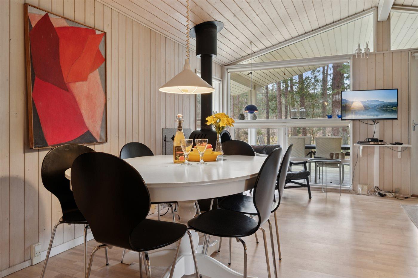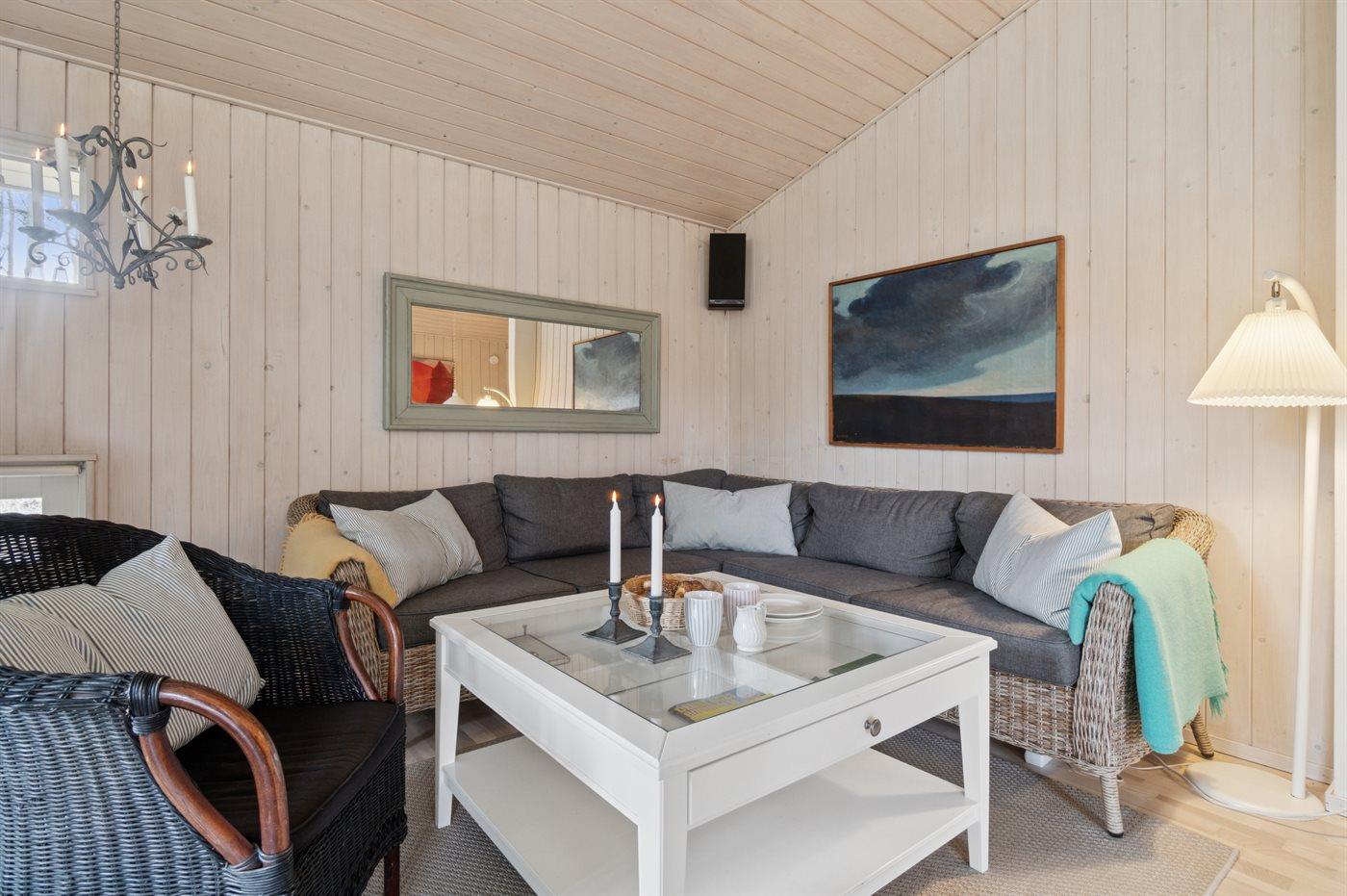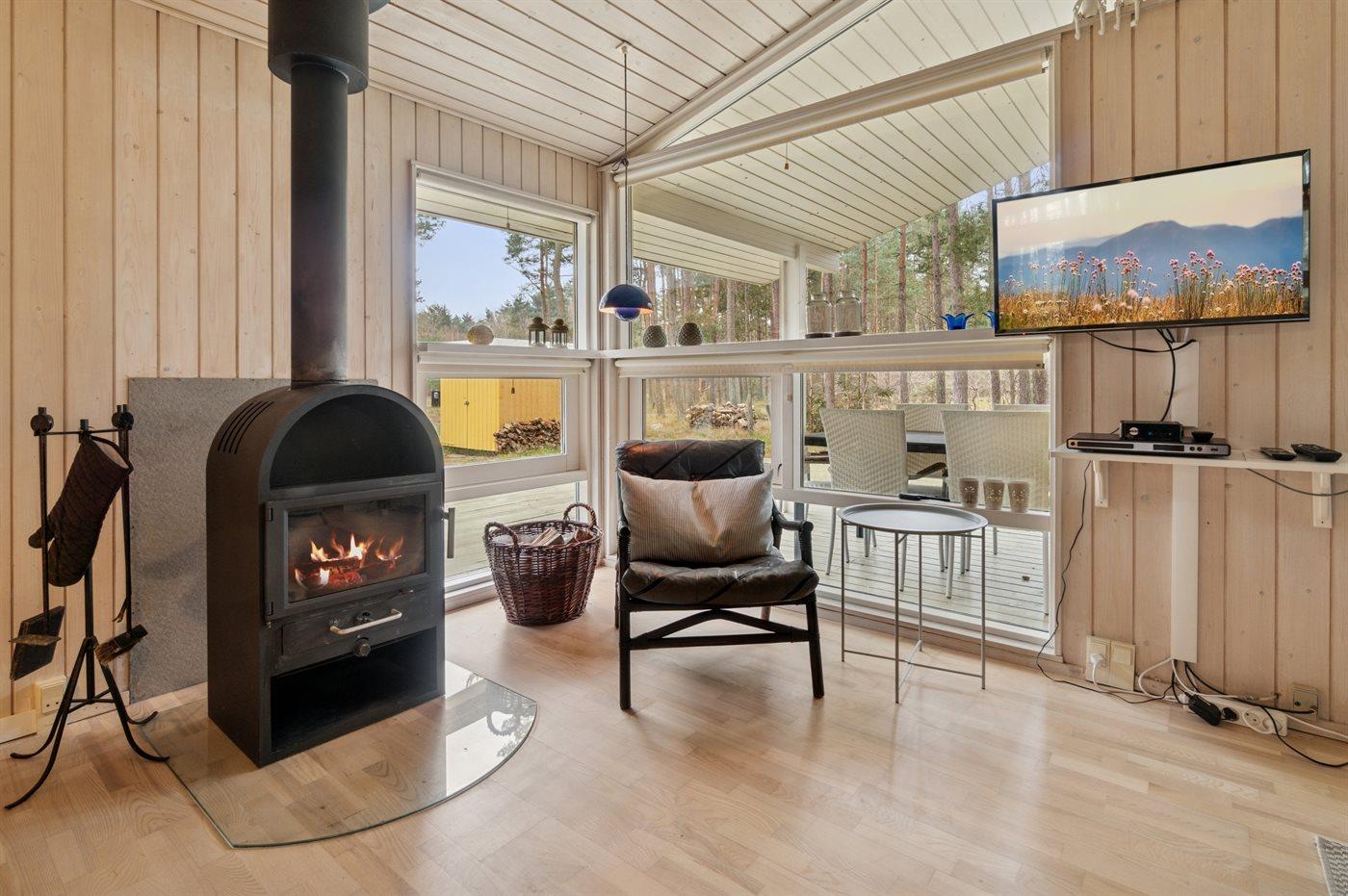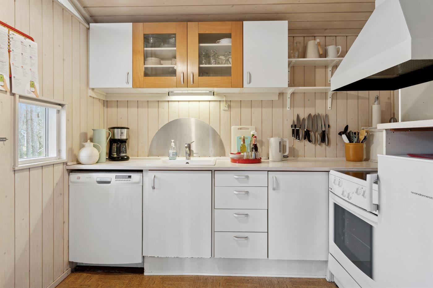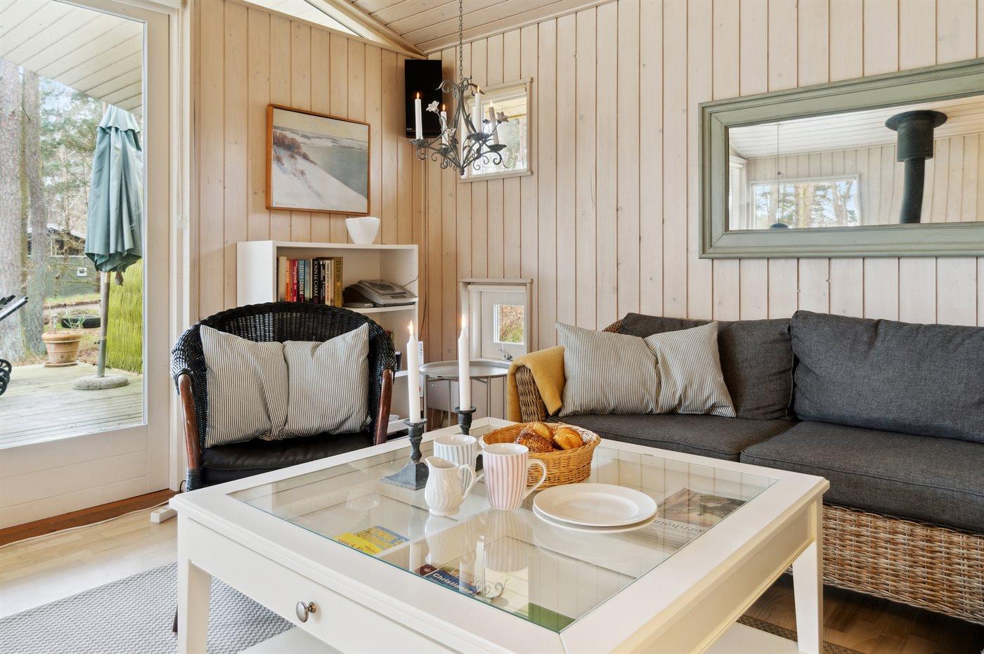 Ein schönes und sehr gepflegtes Ferienhaus aus Holz, auf einem herrlichen Naturgrundstück mit Bäumen gelegen – nicht weit vom kleinen Inselhafen in ”Bakkerne”, wie das Gebiet in Sømarken genannt wird, entfernt.