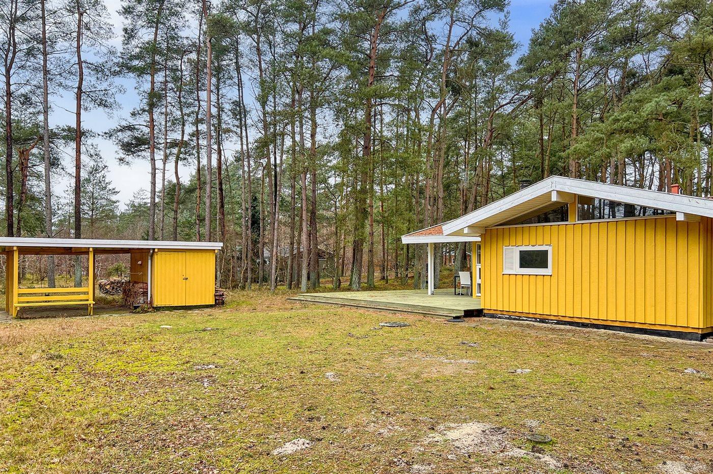 Gemütliches Holzferienhaus auf großem Naturgrundstück nahe Sandstrand und Hafen in Sømarken, Bornholm.