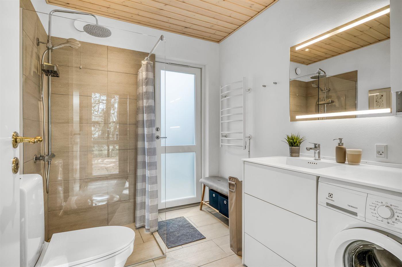 Draußen kannst du die Sonne und die frische Luft auf der 30 m² großen, geschlossenen Terrasse genießen – mit Grill, Schaukel und Außendusche. Es gibt die Möglichkeit, ein Elektroauto zu laden (du musst dein eigenes Ladekabel mitbringen), und du kannst direkt am Haus parken.