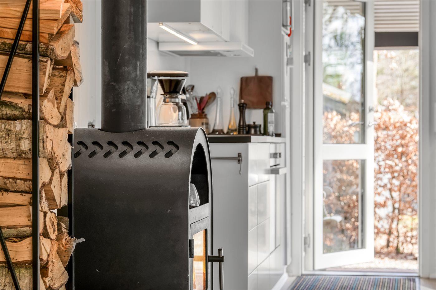 Das Haus hat ein Badezimmer mit Dusche sowie ein zusätzliches Gäste-WC. Für Wärme und Komfort sorgen ein Kaminofen und eine energiesparende Wärmepumpe. Eine Waschmaschine ist ebenfalls vorhanden.