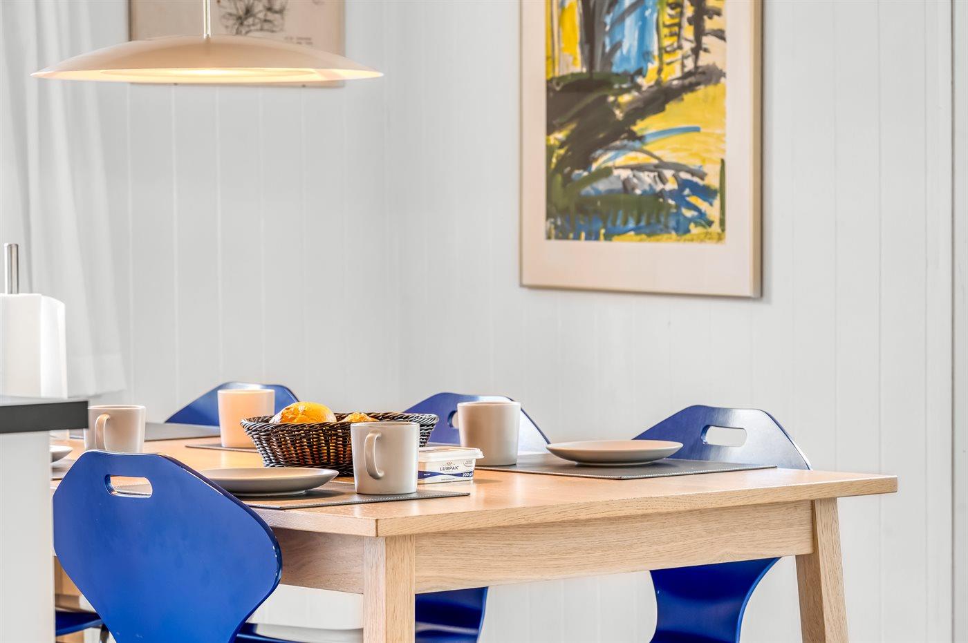 Zur Unterhaltung stehen dir ein Fernseher mit dänischen und internationalen Sendern, Chromecast, DVD-Player, Radio, CD-Player und Bluetooth-Lautsprecher zur Verfügung. Kostenloses WLAN ist ebenfalls vorhanden.