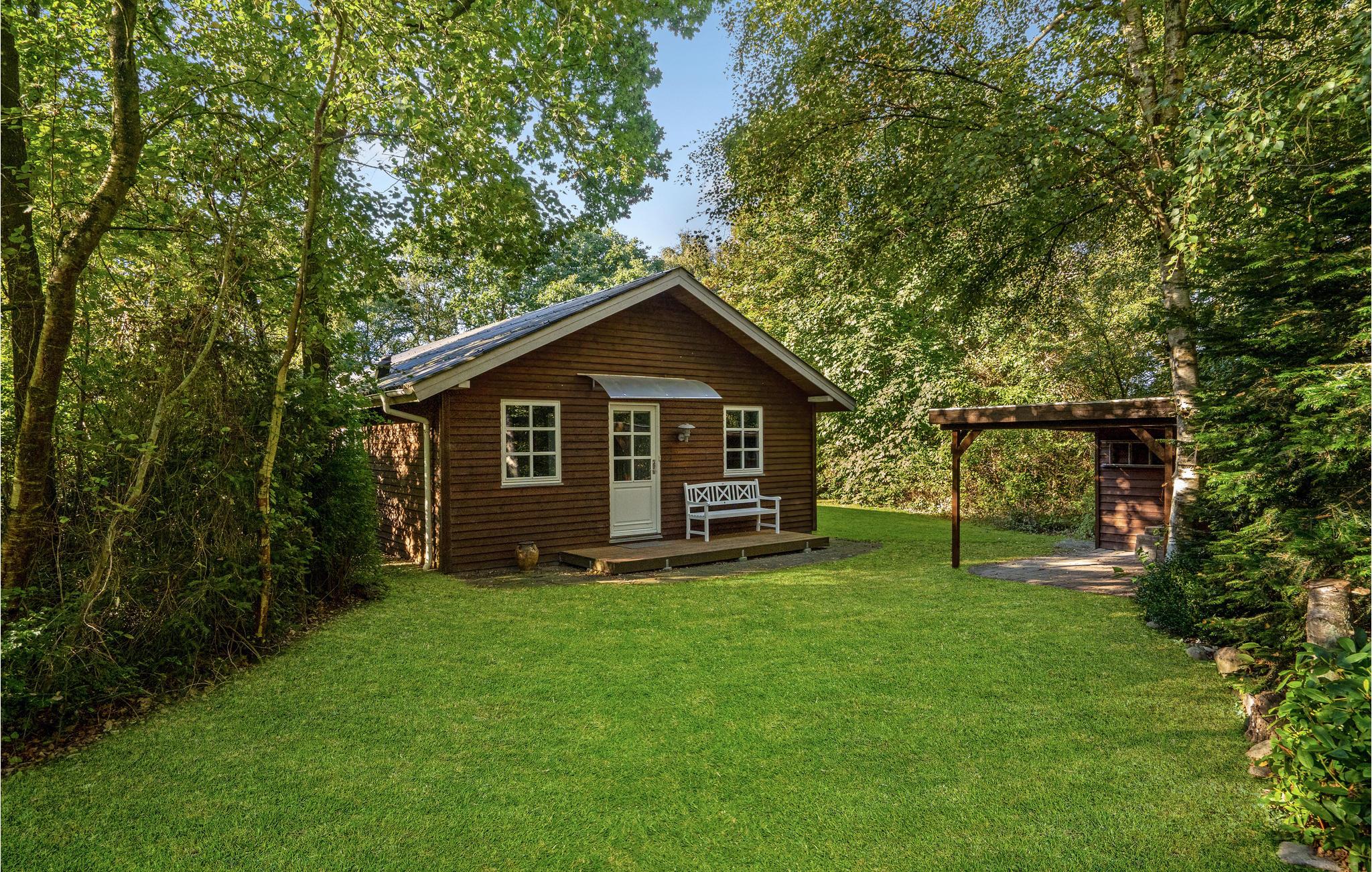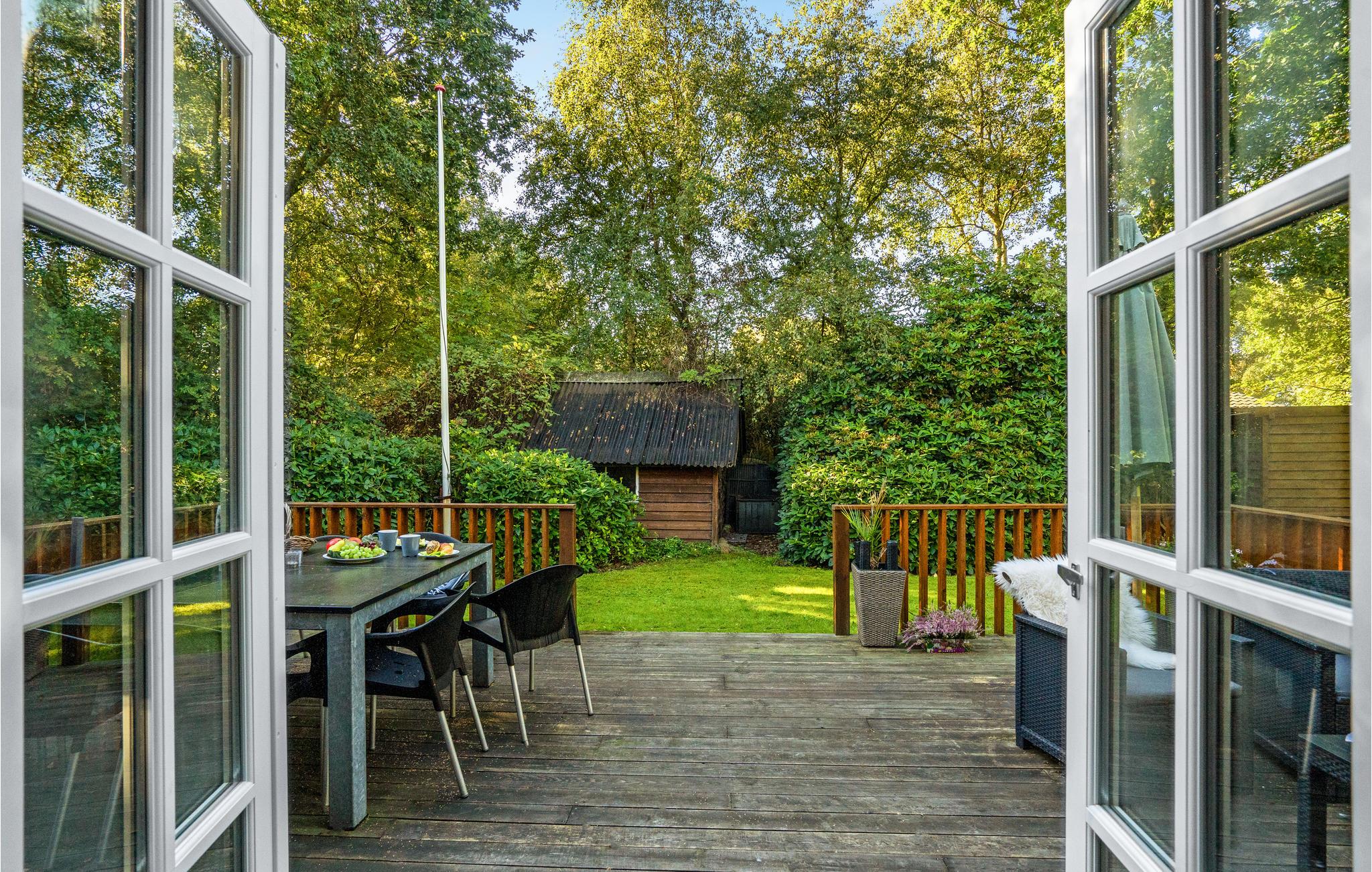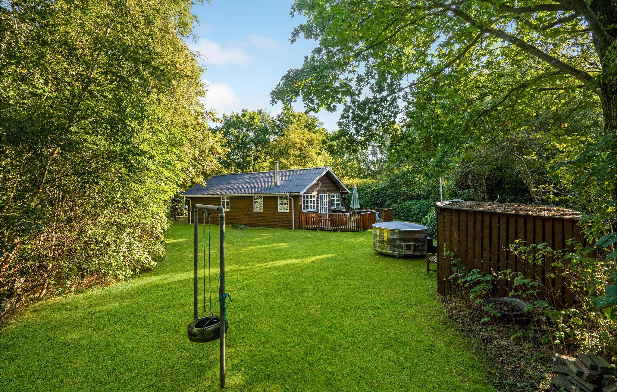 Helles und gepflegtes Feriemhaus mit finnischem Holzbad und idyllischem, geschütztem Naturgrundstück, nur 300 vom Limfjord entfernt.