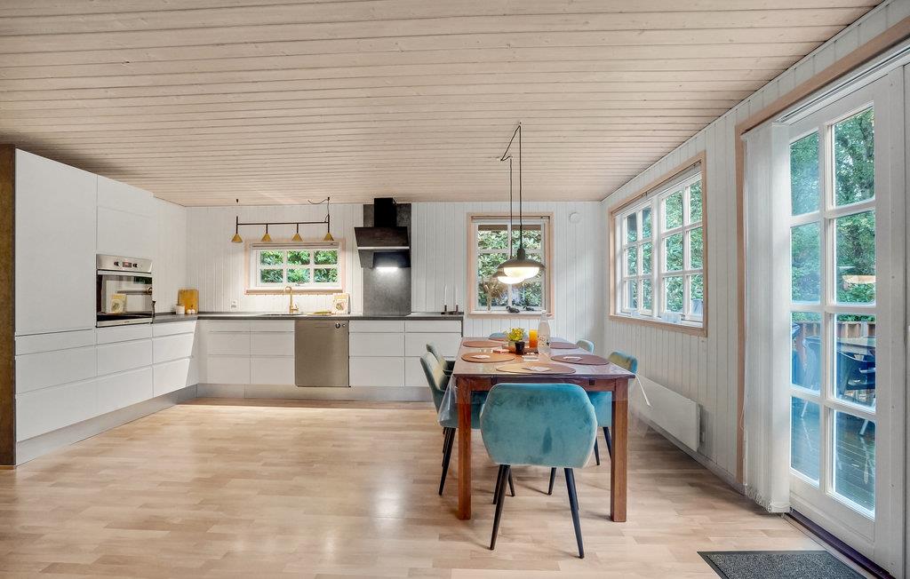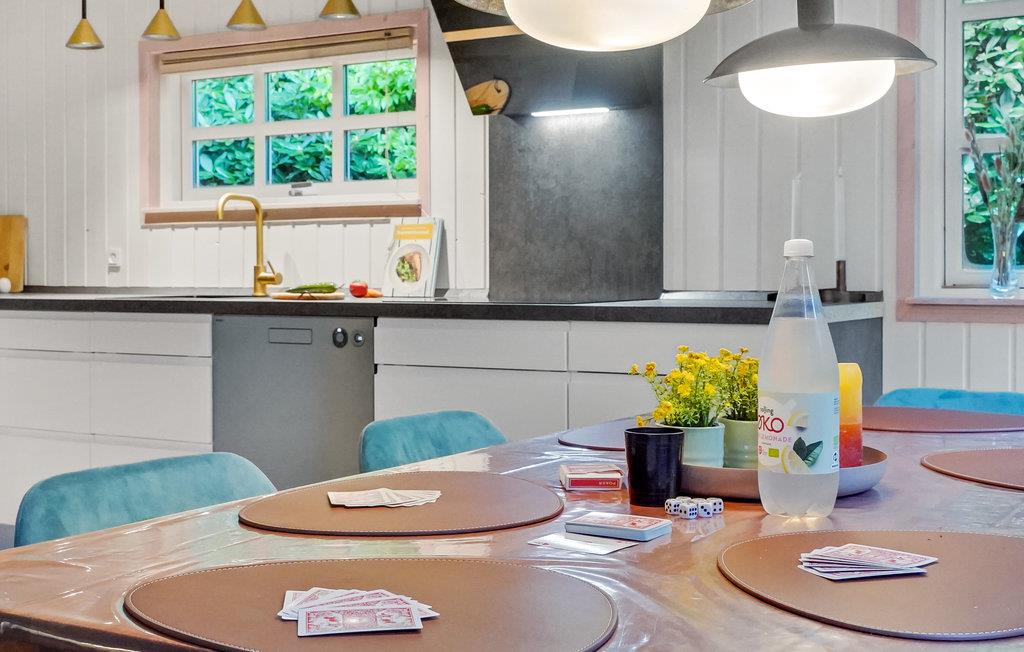 Auf der Halbinsel Thyholm begrüßt Sie dieses charmante Ferienhaus in hübscher, ruhiger Umgebung. Im Innenraum erwartet Sie ein helles, ansprechendes Interieur, das für einen komfortablen Aufenthalt komplett ausgestattet ist. Das Herzstück des Hauses ist der offene Wohnbereich, der zu entspannten Nachmittagen und gemütlichen Abenden mit Ihren Liebsten einlädt.