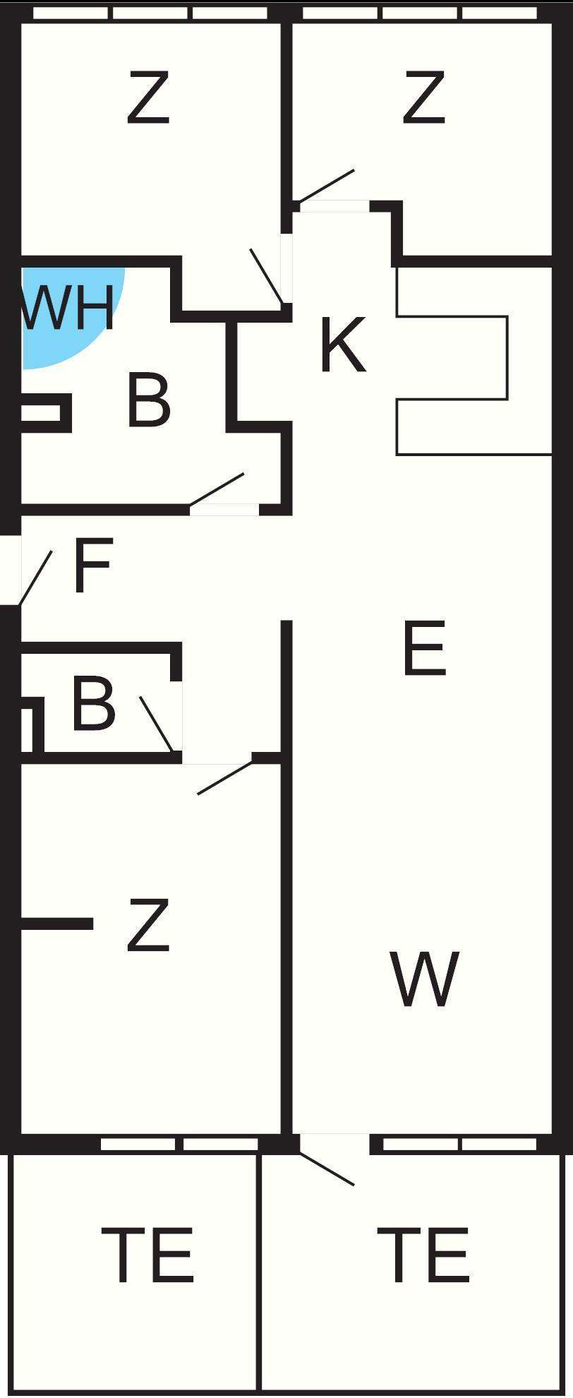 Bad: Waschm, Trockner, WC, Waschb., Dusche, Fußbodenheiz.