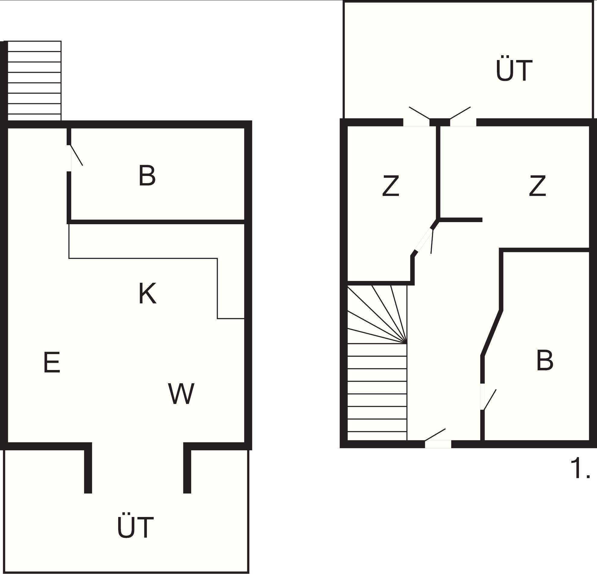 Bad: Waschm, Trockner, WC, Waschb., Dusche, Fußbodenheiz.