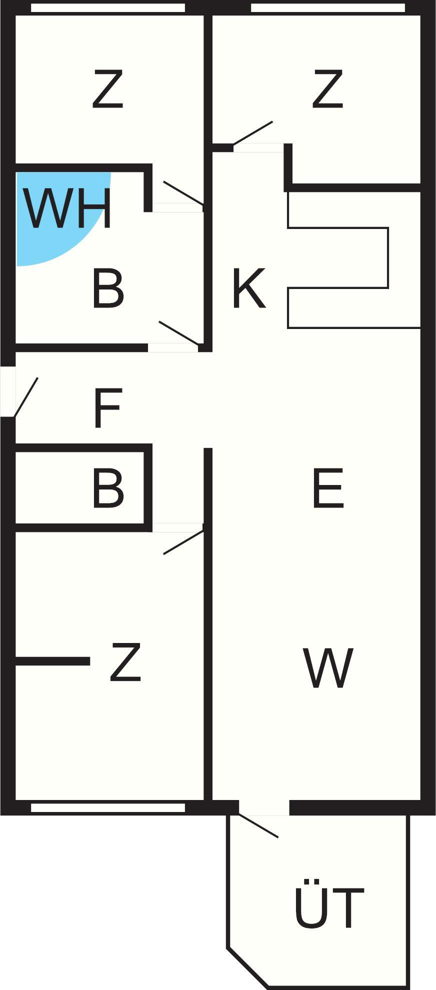 Bad: Waschm, Trockner, WC, Waschb., Dusche, Fußbodenheiz.