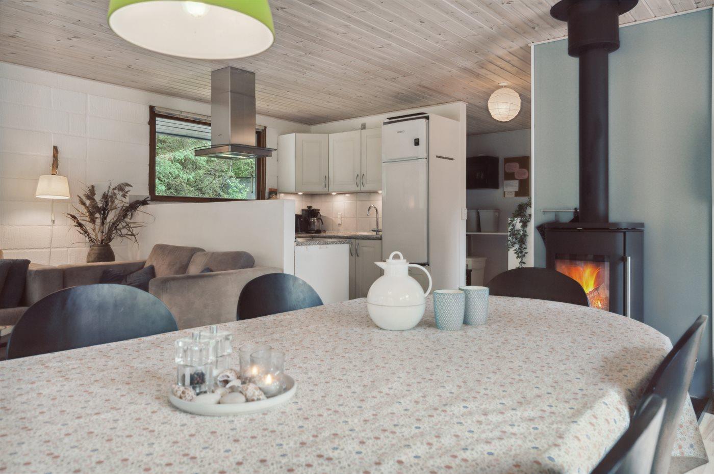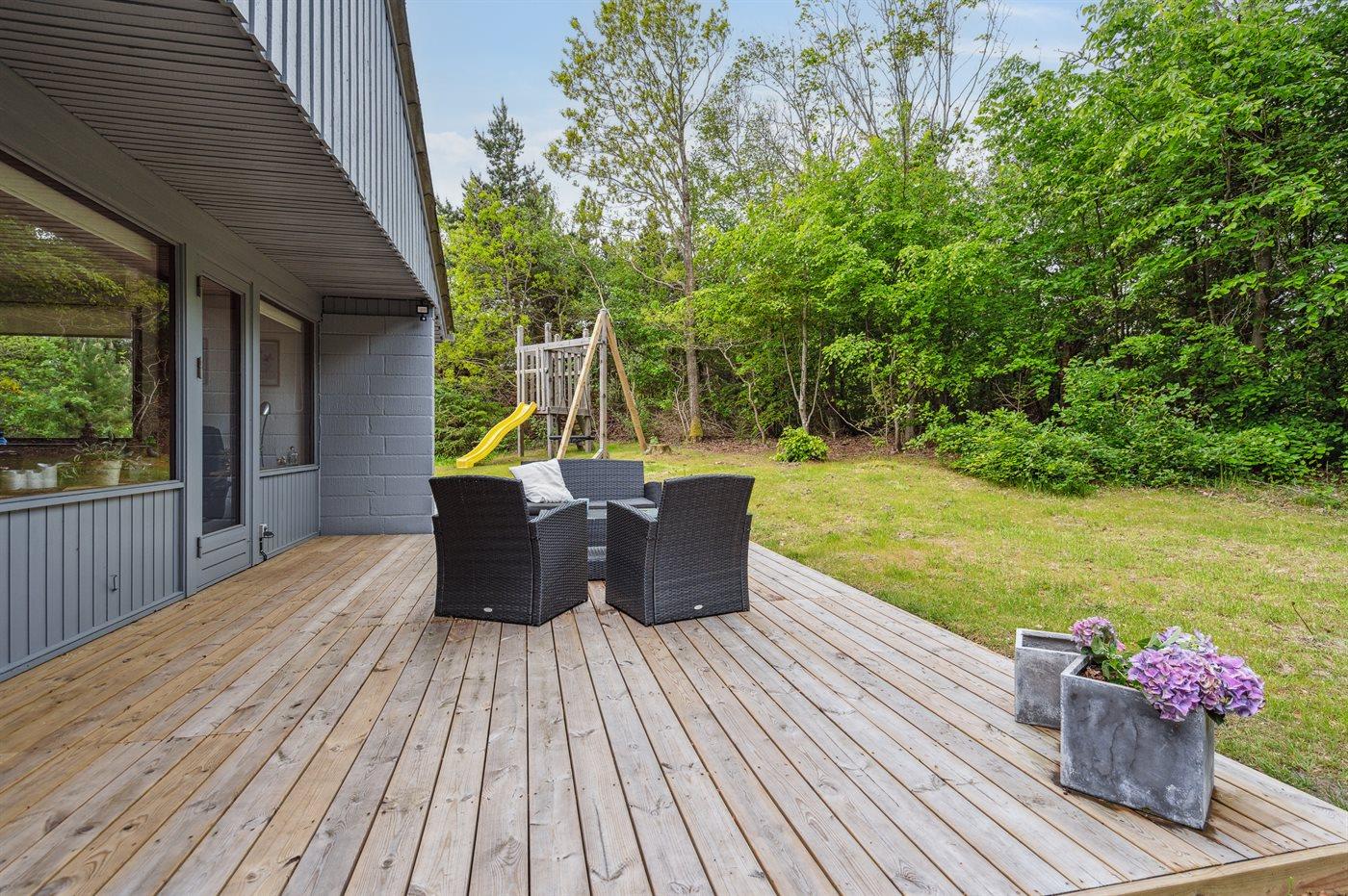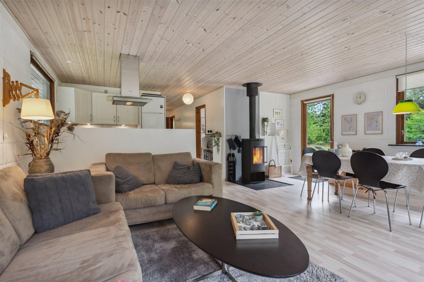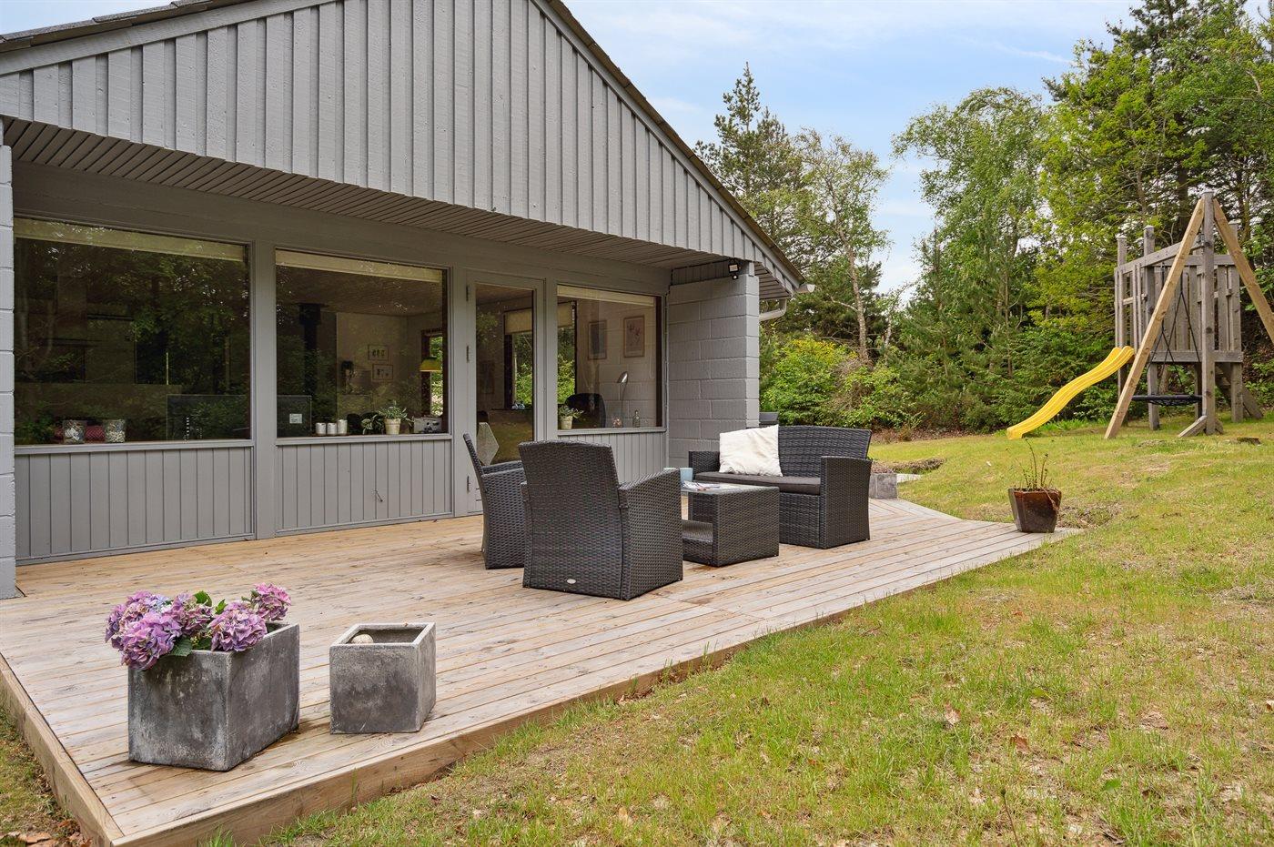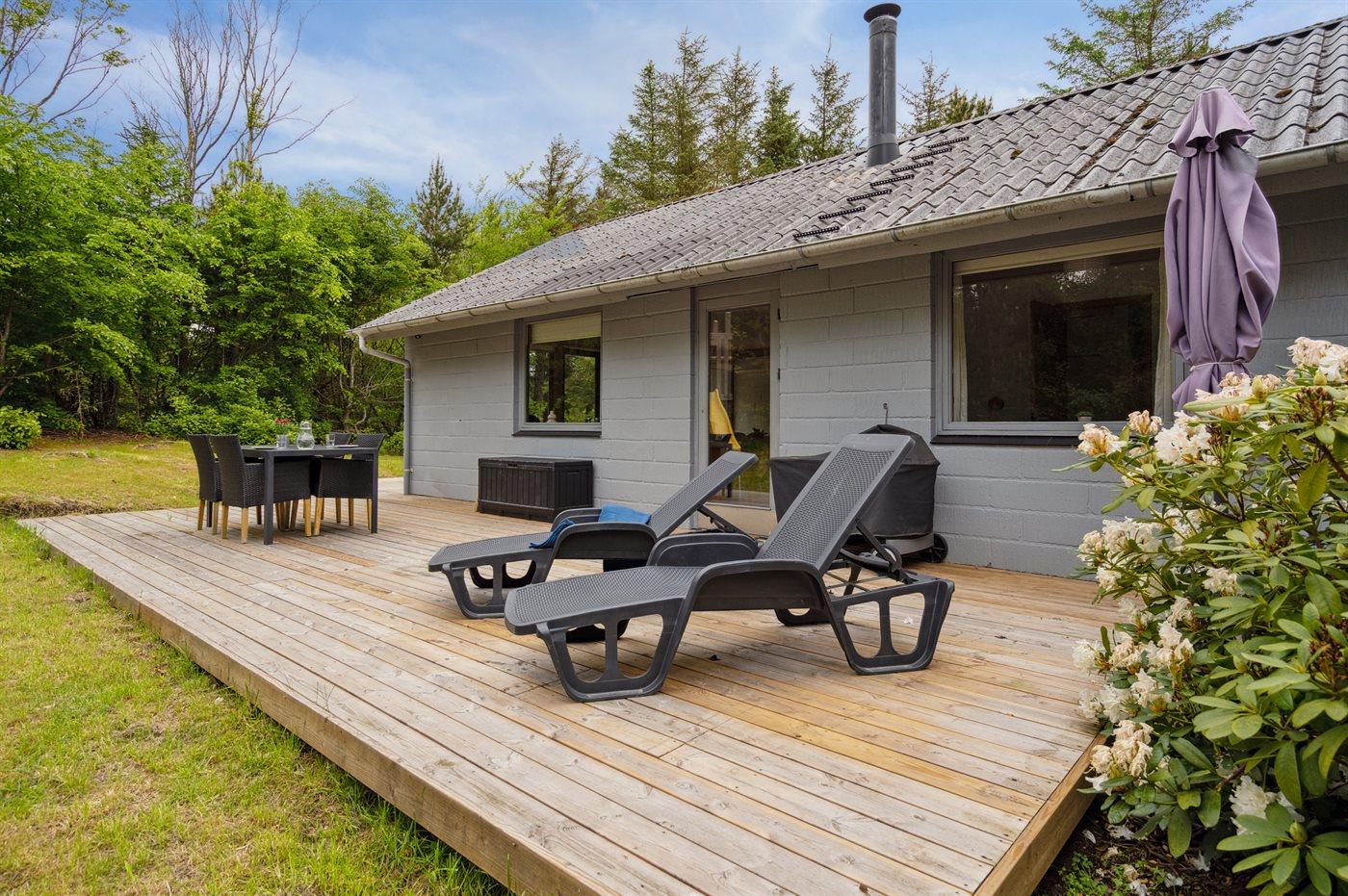 Gemütliches Ferienhaus in ruhiger Lage nahe Søndervig mit Kamin, Terrasse und moderner Ausstattung für erholsame Tage.
