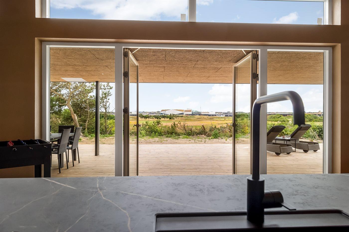 Genieße einen wunderschönen Urlaub in einem modernen Ferienhaus - auf einem attraktiven Grundstück mit Blick auf den Golfplatz und auf den Ferienort Søndervig.