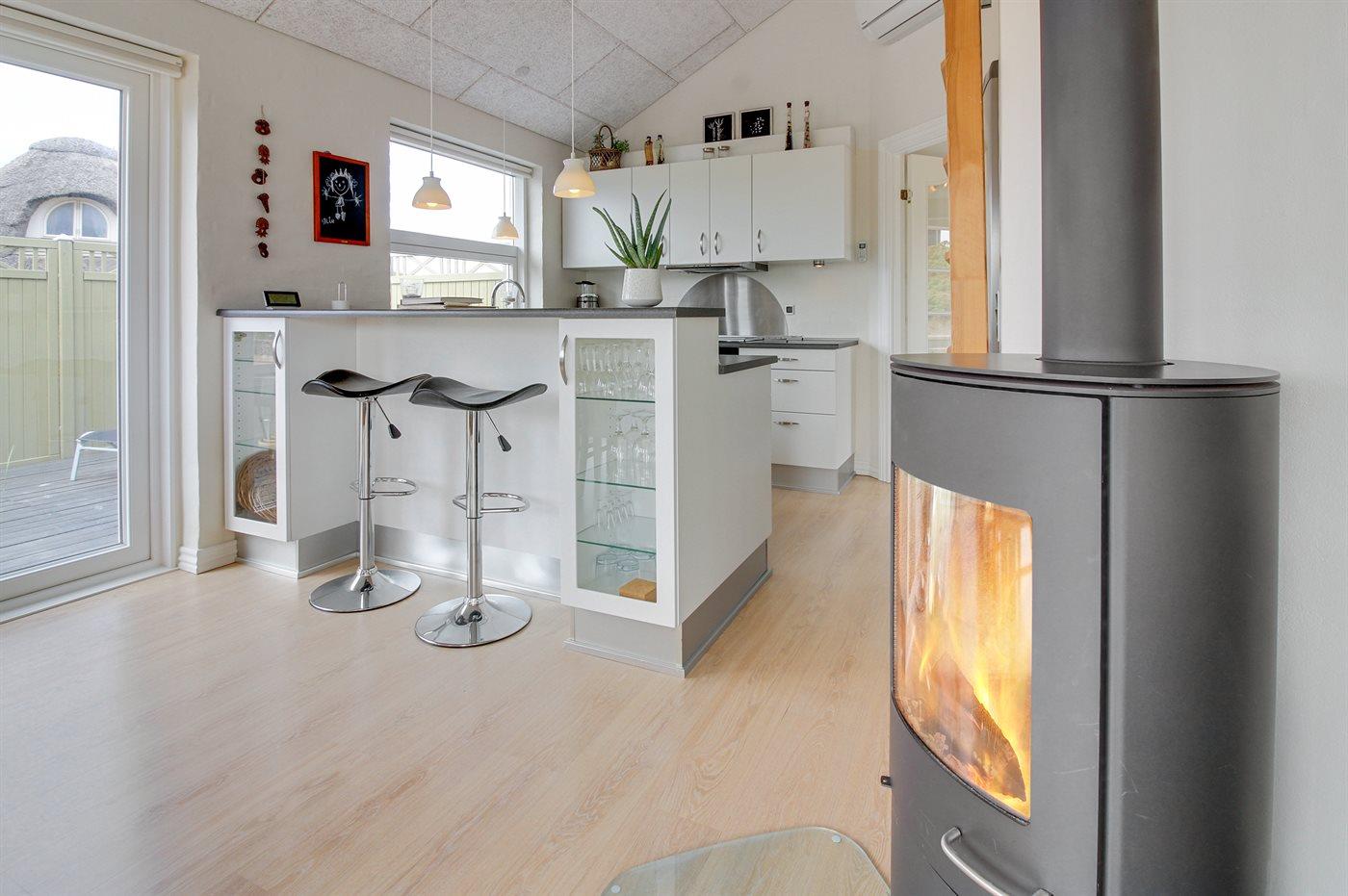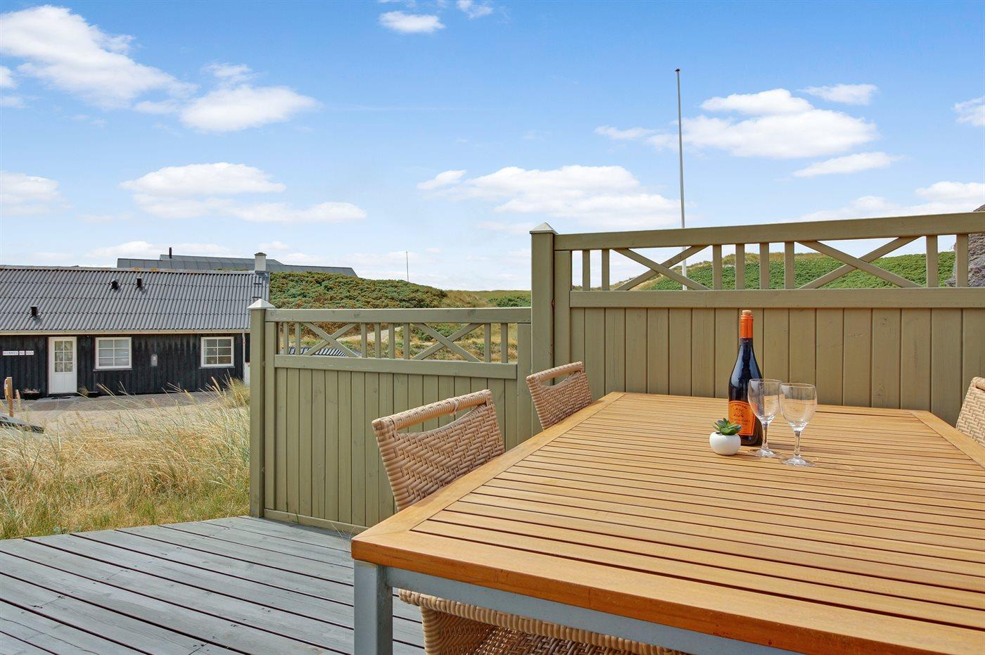 In der Nähe von Søndervig findest du dieses idyllisch gelegene Ferienhaus nahe an der Nordsee, auf einem hügeligen Grundstück mit fantastischem Blick über die umliegende Dünenlandschaft. Das Ferienhaus bietet mehrere schöne Terrassen an, darunter eine nach Osten ausgerichtete, private Terrasse, auf der du deinen Morgenkaffee in der Sonne genießen kannst, während das Rauschen der Nordseewellen eine ruhige Hintergrundkulisse schafft.