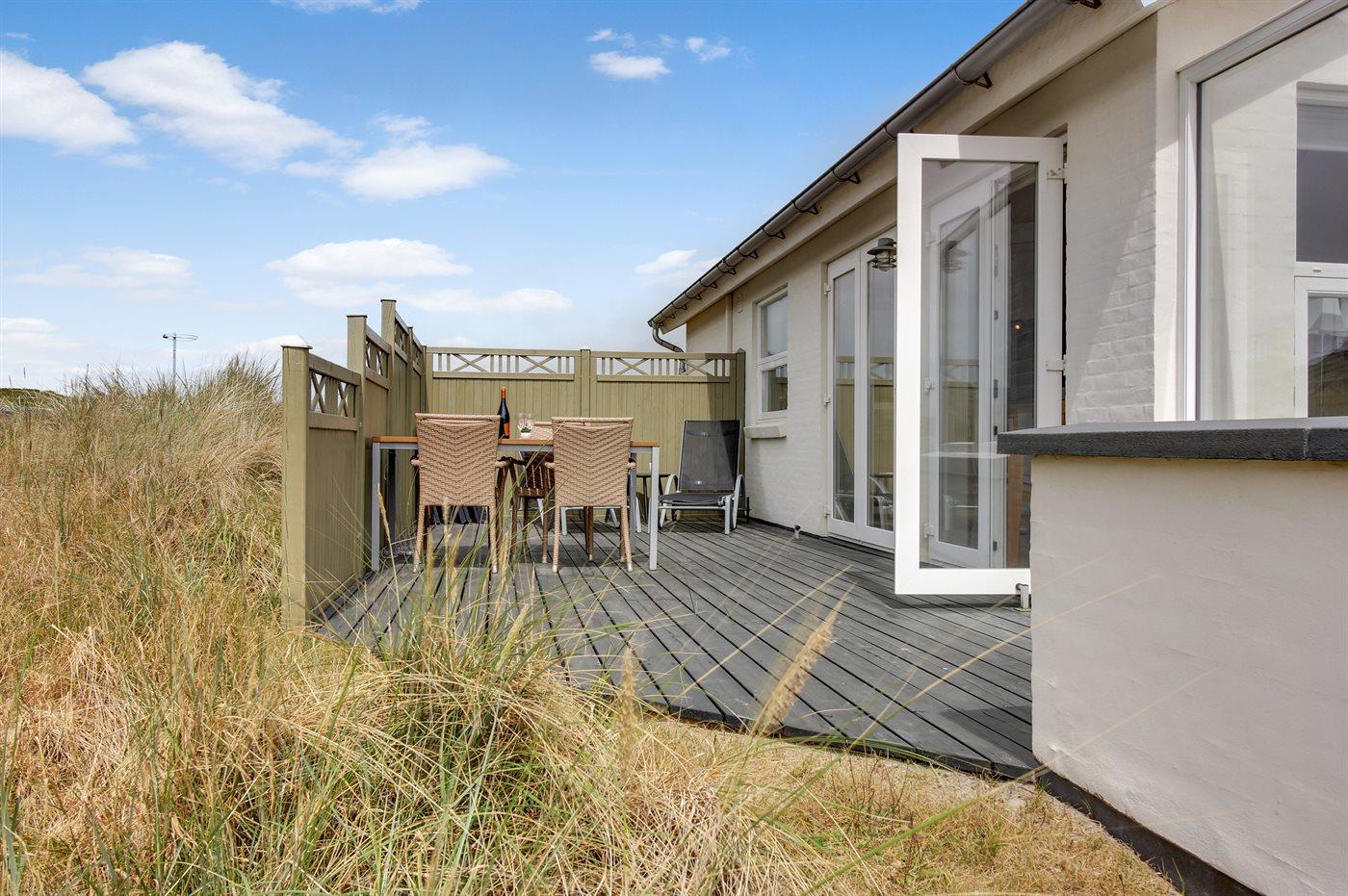 Die Ferienunterkunft liegt auf einem 1000 m² großen Dünengrundstück. Die Entfernung zum Meer beträgt 100 m. Die nächste Einkaufsmöglichkeit liegt 1000 m entfernt. Es steht ein 50 m² Terrassenareal zur Verfügung. Parkplatz auf dem Grundstück.