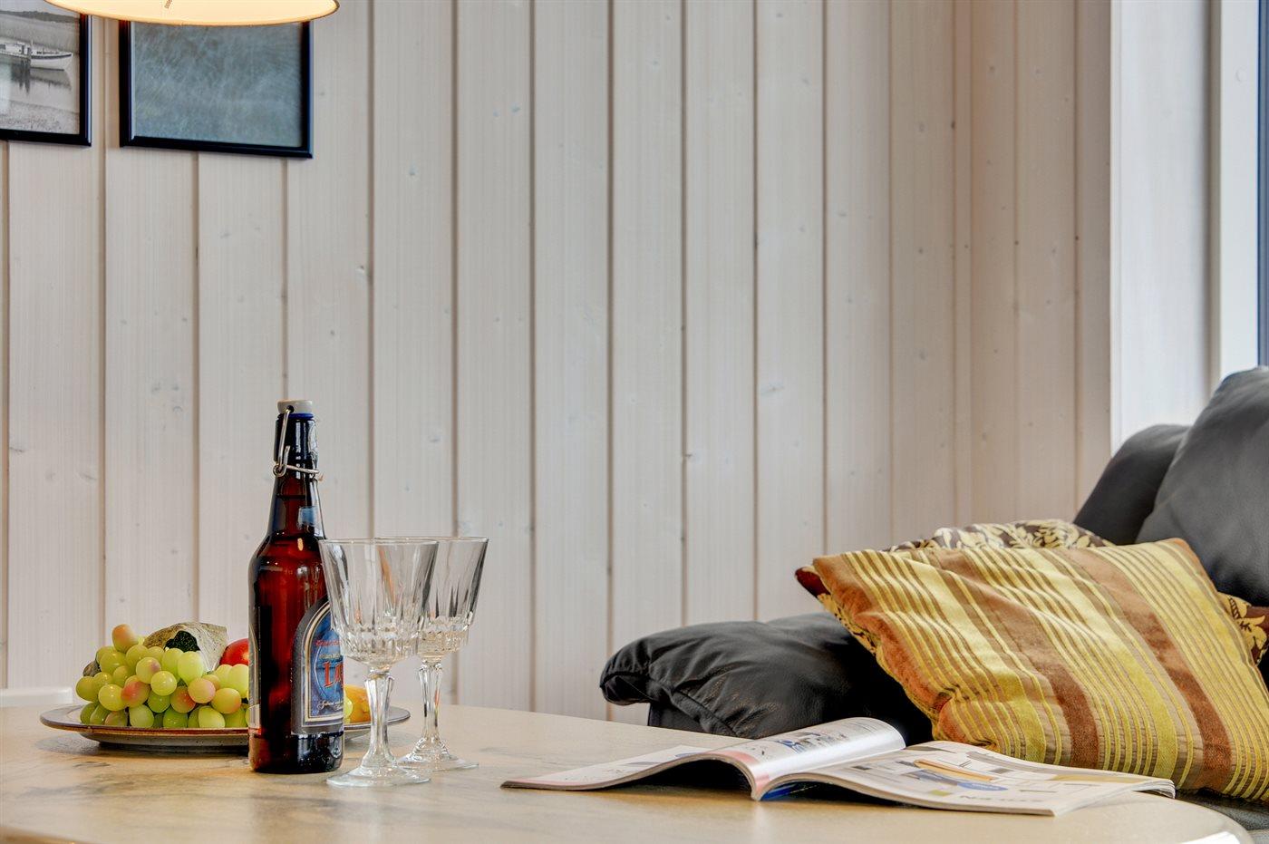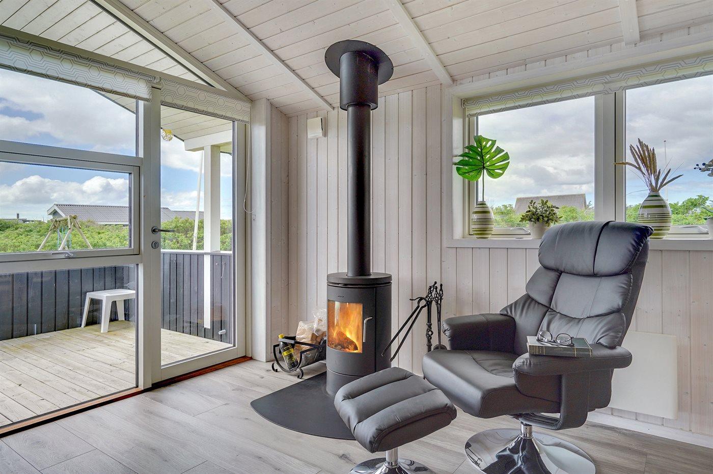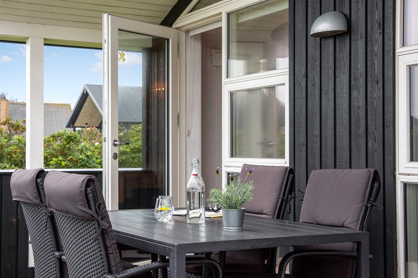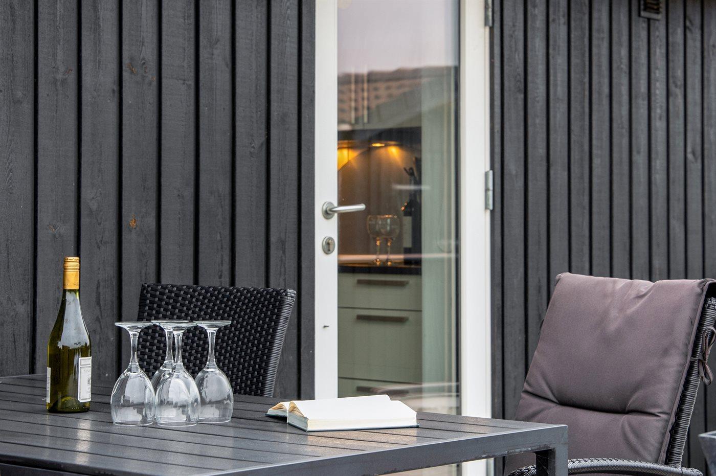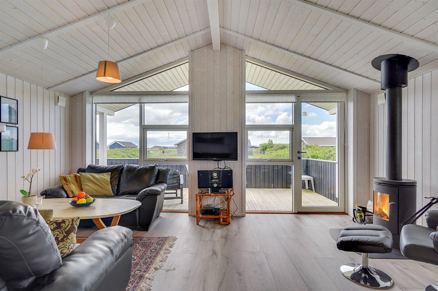 Dieses besonders schöne Ferienhaus, 2017 gebaut, liegt auf einem großen Grundstück mit Platz für Ballspiele und andere Aktivitäten im Freien. Das Haus ist hell und geschmackvoll eingerichtet und im gemütlichen Wohn-/Esszimmer sorgt die große Fensterfront für einen guten Lichteinfall. Zum Haus gehört eine schöne und geschlossene, zum Teil überdachte Terrasse mit Gartenmöbeln – vor dem Wind geschützt.