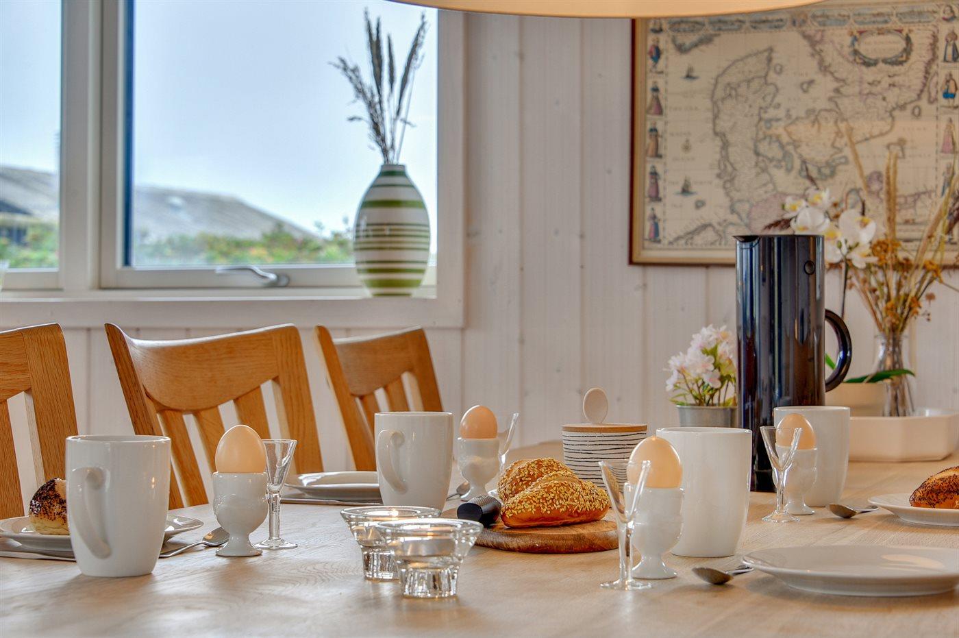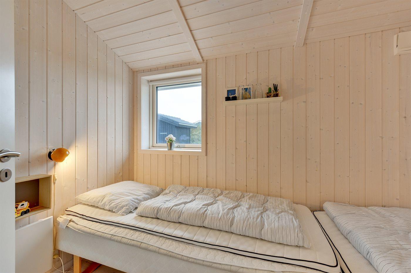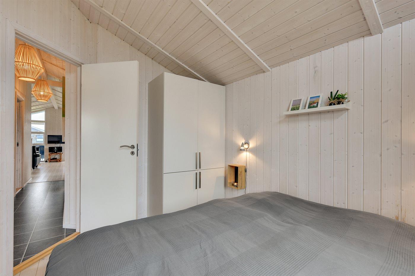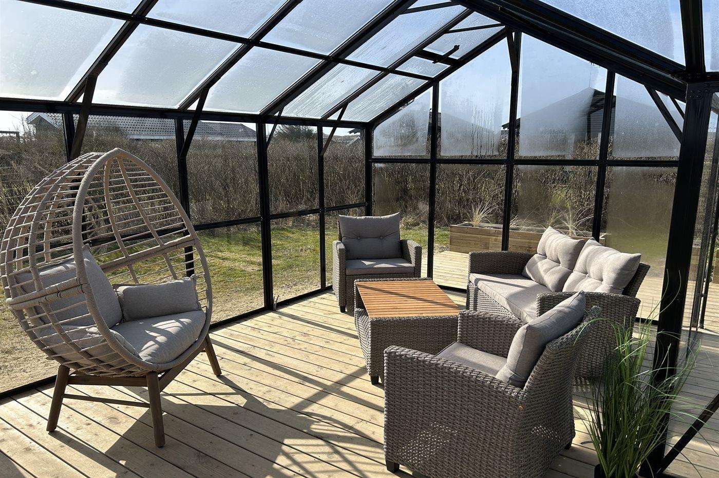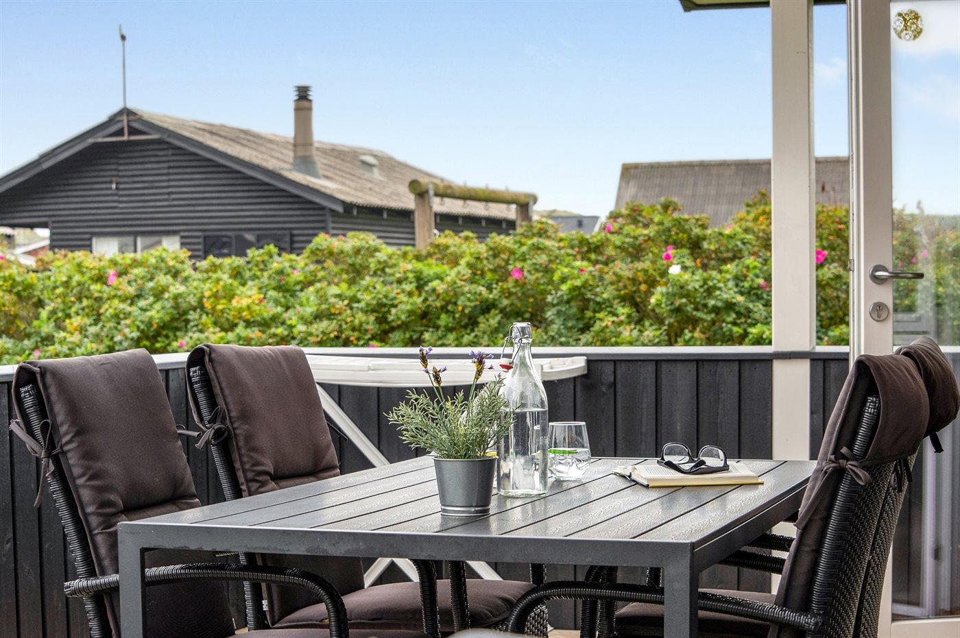 Dieses besonders schöne Ferienhaus, 2017 gebaut, liegt auf einem großen Grundstück mit Platz für Ballspiele und andere Aktivitäten im Freien. Das Haus ist hell und geschmackvoll eingerichtet und im gemütlichen Wohn-/Esszimmer sorgt die große Fensterfront für einen guten Lichteinfall. Zum Haus gehört eine schöne und geschlossene, zum Teil überdachte Terrasse mit Gartenmöbeln – vor dem Wind geschützt.