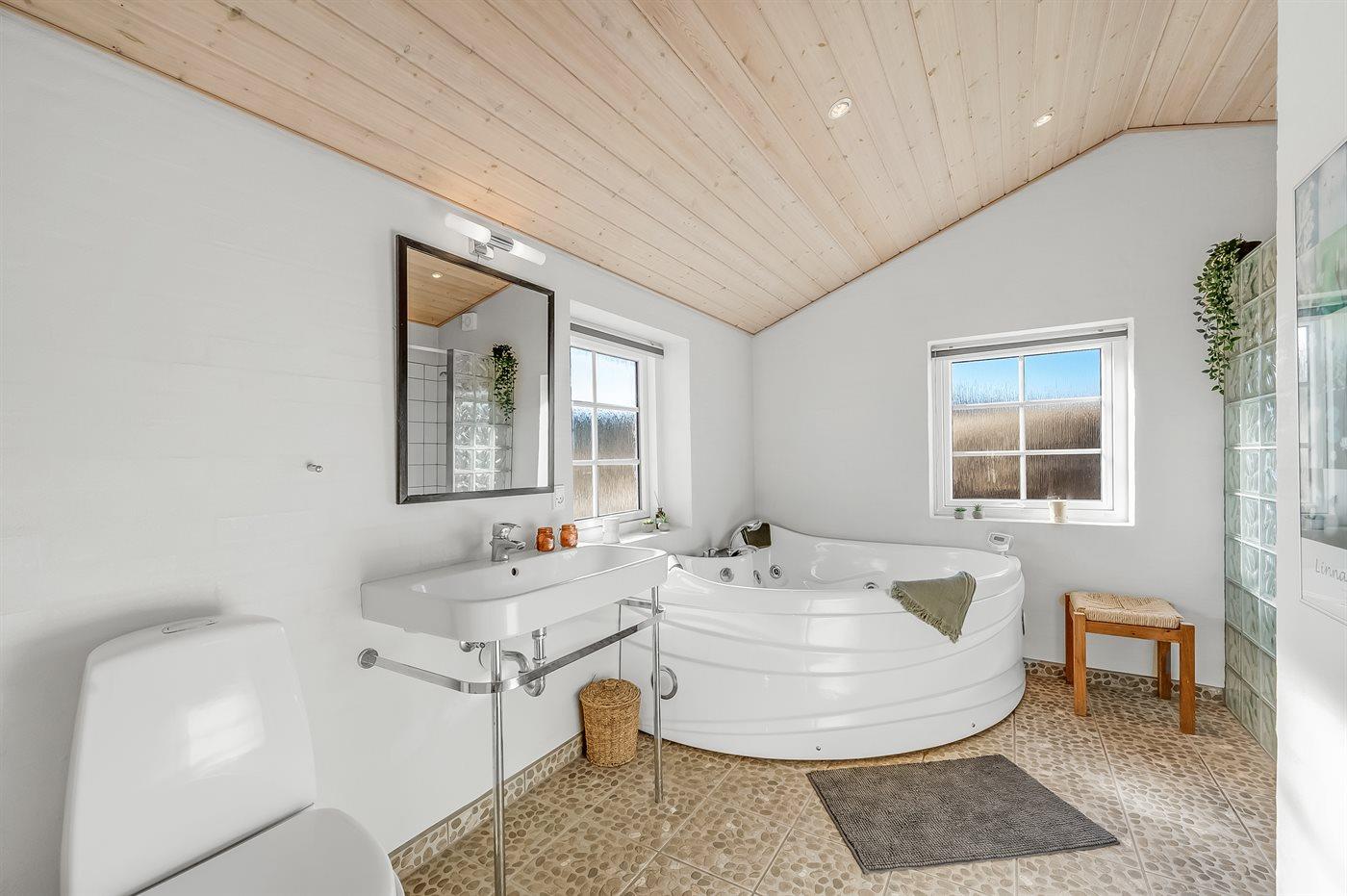 Es gibt 2 Badezimmer mit Duschnische und 2 Toiletten. Fußbodenheizung in 2 Badezimmern. Es steht eine Sauna zur Verfügung in der Sie sich so richtig entspannen können.