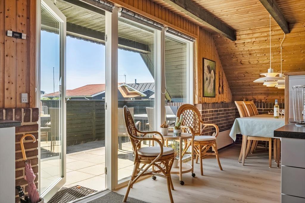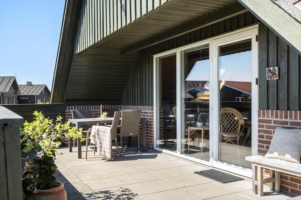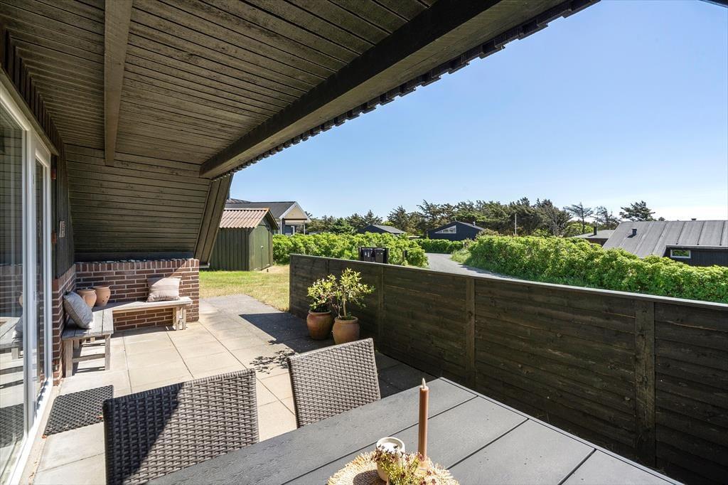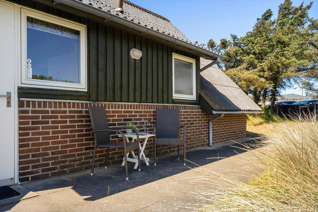 Das Erste, was draußen ins Auge fällt, ist die sonnige und geschützte Terrasse, die sich fast wie ein privater Innenhof anfühlt. Hier könnt ihr in den Liegestühlen die Sonne genießen, den Frühstückstisch im Freien decken oder lange Sommerabende mit Grillessen und vergnüglichen Anekdoten zum Tagesausklang verbringen. Durch die südliche Ausrichtung ist für viel Sonnenlicht gesorgt, doch auch wenn ihr Schatten oder Windschutz sucht, werdet ihr immer ein passendes Plätzchen finden. Der kleine Rasen lädt die Jüngsten der Familie zum Spielen ein, und im abschließbaren Schuppen könnt ihr Fahrräder, Strandausrüstung oder euer Angelzeug aufbewahren. Nur 100 Meter von eurer Haustür findet ihr Ladestationen - das macht das Aufladen des E-Autos einfach und bequem. Und ein besonderes Detail: Ein kleines, fast geheimes Gartentor führt euch direkt in das nette Zentrum von Søndervig.