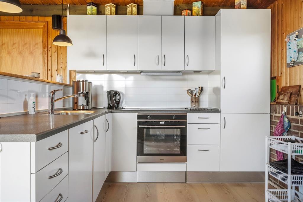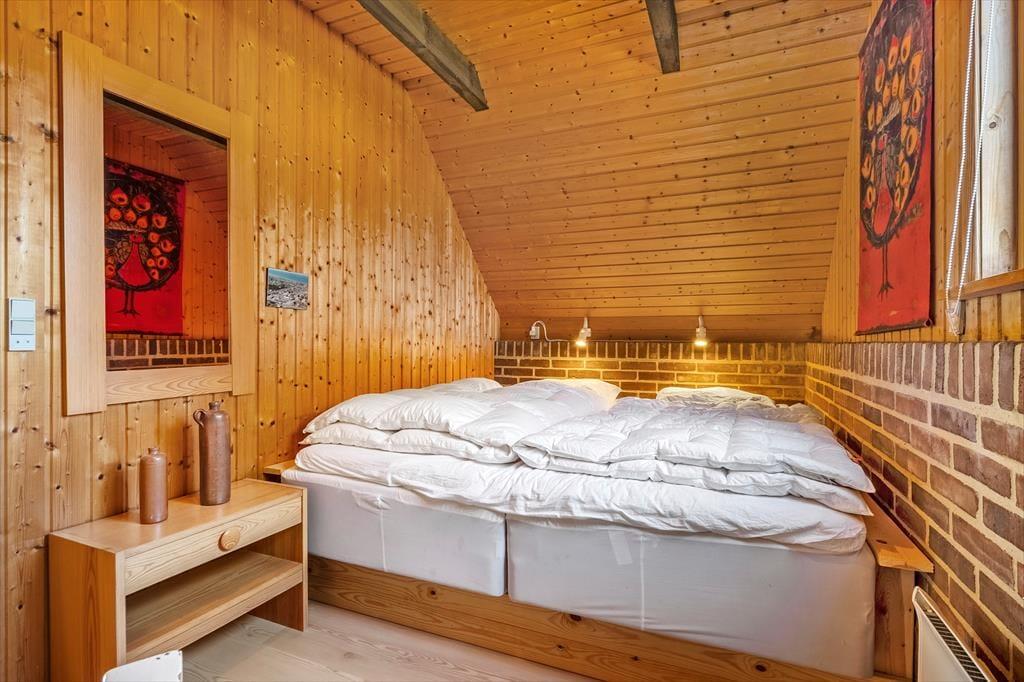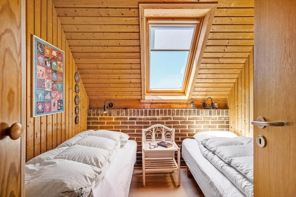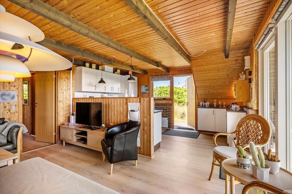 Schon im Eingang des Ferienhauses werdet ihr von der lichten und einladenden Innenstimmung empfangen. Das Haus wurde 2025 mit neuen Fußböden modernisiert, was einen frischen und zeitgemäßen Ausdruck vermittelt, ohne dass der ursprüngliche Ferienhauscharme verloren geht. Holzwände und sichtbare Deckenbalken sorgen für eine urgemütliche Urlaubsstimmung - die Einrichtung ist schlicht und wohnlich - ihr werdet euch schnell pudelwohl fühlen. Die Küche und das Wohnzimmer sind zu einem Gemeinschaftsraum verbunden, in dem Kochen, Essen und gemütliches Beisammensein auf angenehmste Weise vereint sind. Macht es euch auf dem Sofa mit einem leckeren Getränk bequem, schaut euren Lieblingsfilm auf dem Flachbildfernseher oder genießt stille Momente mit einem guten Buch – vielleicht mit offener Terrassentür, um das Rufen Möwen und die frische Meeresluft hereinzulassen. Die drei Schlafräume sind praktisch im Haus verteilt, und besonders das nordöstliche, etwas separate Zimmer neben dem Bad könnte bei Teenagern sehr beliebt sein.