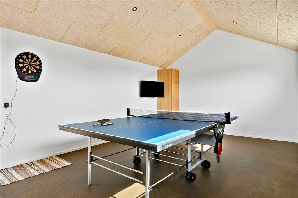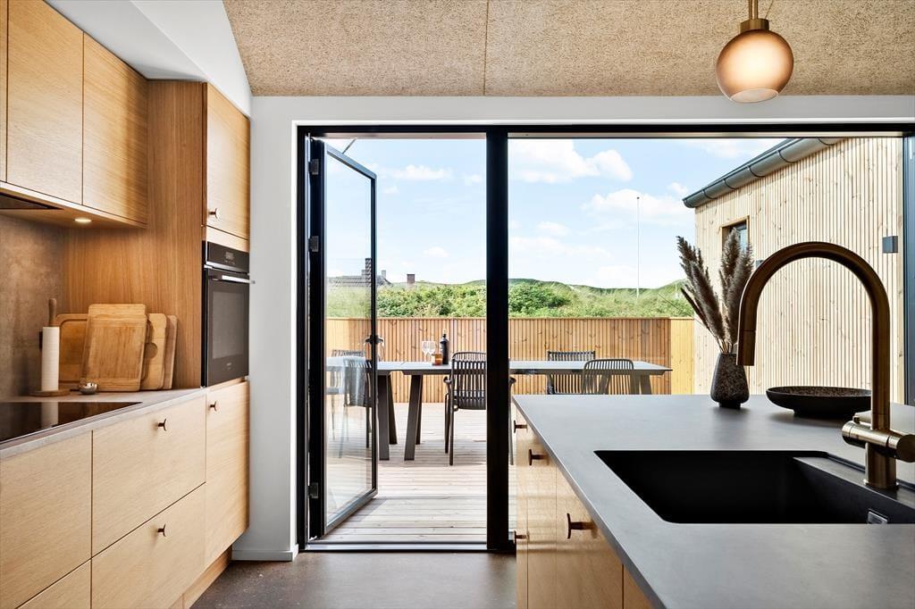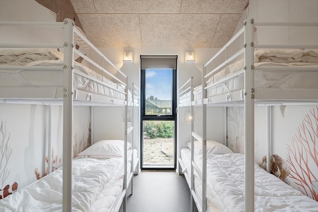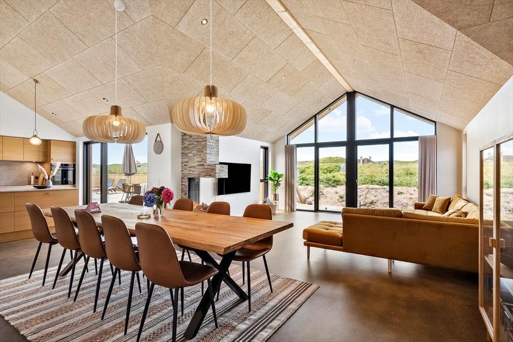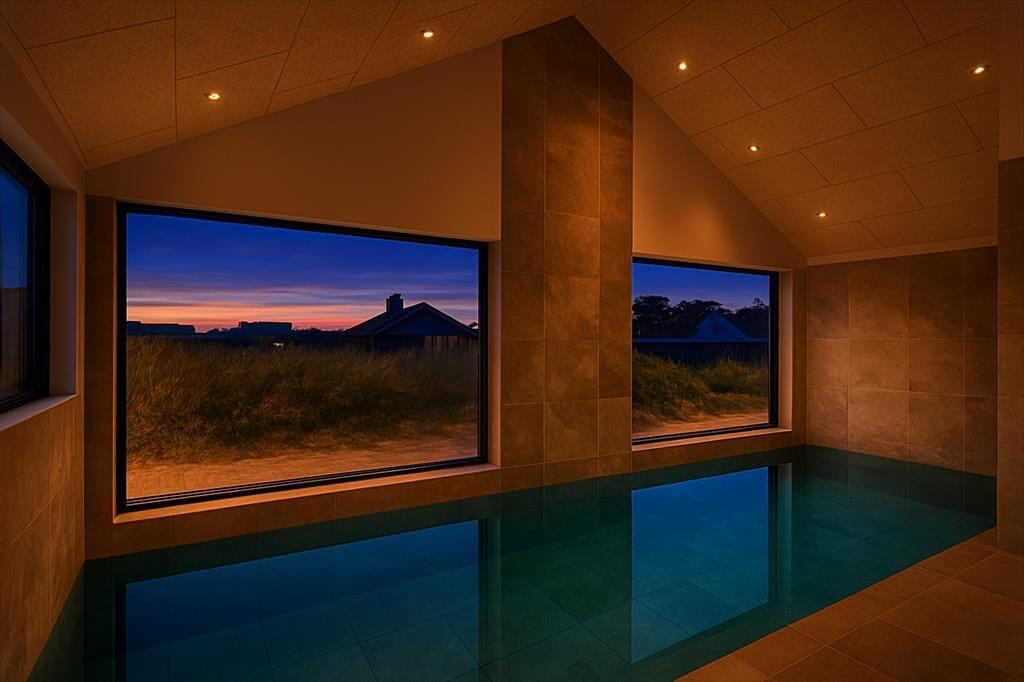 Schon beim Betreten dieser einladenden vier Wände wirst du die Ausstrahlung und Qualität des Interieurs bemerken. Dieses neu erbaute, moderne Pool-Ferienhaus mit seinen180 m2 bietet den perfekten Rahmen für einen aktiven und zugleich erholsamen Urlaub mit der Familie. Auf einem wunderschönen Naturgrundstück gelegen, bietet das Haus ein stilvoll luxuriöses Urlaubsdomizil mit großen Fenstern nach Westen – somit hast du einen fantastischen Blick auf die Dünen und die atemberaubenden Sonnenuntergänge. Die 10 Schlafplätze sind auf 4 Schlafräume aufgeteilt, wobei 3 der Zimmer über Doppelbetten verfügen und das letzte Schlafzimmer mit Etagenbetten ausgestattet ist. Der natürliche Treffpunkt ist der Wohnraum, der in offener Verbindung mit der gut ausgestatteten und einladenden Küche steht, in der köstliche Speisen für die ganze Gesellschaft zubereitet werden können. Und während das Essen zubereitet wird, kannst du den Blick auf die Dünen von den Wohnzimmermöbeln aus genießen - macht euch den Gaskamin an, das sorgt für die allergemütlichste Atmosphäre. Auch könnt ihr Filme über Chromecast auf dem Fernseher streamen oder aus den vielen hinterlegten TV-Kanälen wählen. Eines der Highlights des Hauses ist der Poolbereich mit Bassin mit Gegenstromanlage, der über eine große New Yorker Glastrennwand zugänglich ist. Hier lassen sich viele angenehme Stunden im und am Schwimmbad verbringen und du hast direkten Zugang zu einer Außendusche und dem herrlichen Freiluft-Whirlpool. Nach einem erfrischenden Bad oder einer Runde im Whirlpool kannst du dich in die Sauna zurückzuziehen, wo Ruhe und Wärme dich umhüllen. Beschäftigungen im Innenbereich gibt es reichlich, denn neben dem Poolbereich gibt es auch einen Aktivitätsraum mit Tischtennis und Dart.