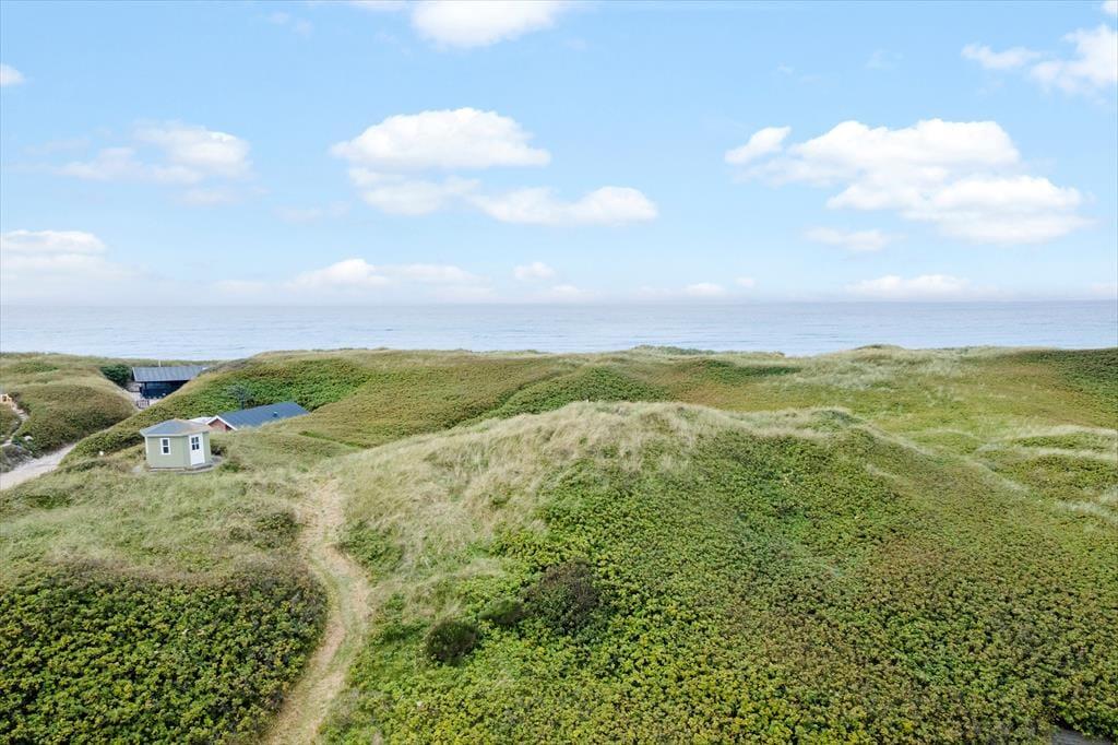 Abends, von der Terrasse aus könnt ihr den Sonnenuntergang hinter den Dünen im Westen beobachten und verspricht dieser besonders schön zu werden, kanns aufgehen und runter zum Strand. Es ist eine kurze Strecke von etwa vier Minuten und das macht man ja gerne, auch mehrmals am Tag. Das kraftvolle Westenmeer ist zu jeder Jahreszeit das absolute „Go to“ und dies lädt zu langen Spaziergängen ein, auf denen du die tosenden Wellen in vollen Zügen genießen kannst. Zu Fuß oder mit dem Fahrrad seid ihr schnell in Søndervig, einem Bade- und Küstenort mit lebhafter Atmosphäre, besonders im Sommer. Ihr könnt euch von der köstlichen Auswahl an den Eiscafés und Restaurants verführen lassen, Minigolf spielen und das jährliche Sandskulpturenfestival erleben. Die Nehrung Holmsland Klit nach Süden ist wirklich erkundungswert, das reiche Vogelleben am Stadil Fjord ein interessantes Erlebnis und die gemütliche Hansestadt Ringkøbing oder Fischer- und Hafenstadt Hvide Sande - nur 15 Autominuten entfernt - allzeit einen Besuch wert.