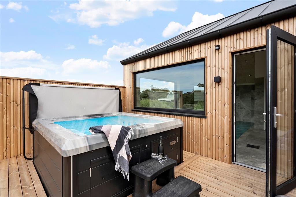 Nur 300 Meter vom Strand entfernt liegt dieses luxuriöse und gut ausgestattete Pool-Ferienhaus, das im Jahr 2025 neu erbaut wurde und zu einem Luxusurlaub und gemütlichen Zusammenkünften mit der ganzen Familie einlädt. Möchtest du deinen Urlaub entspannt im Pool und auf einer herrlichen Holzterrasse mit Außen-Whirlpool genießen, dann ist die Adresse für deinen nächsten Urlaub Hafavej 147.