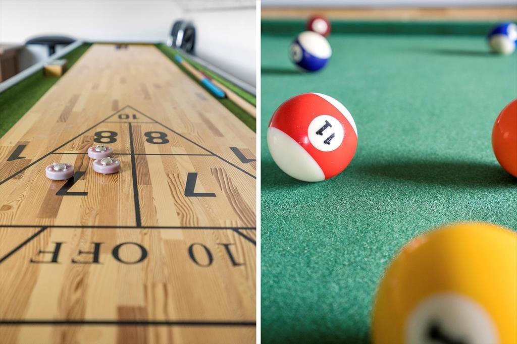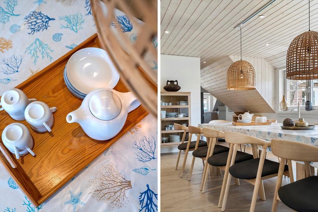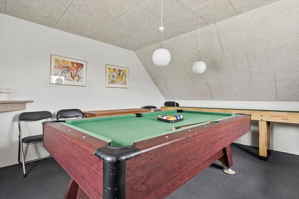 Hinter den roten Steinwänden lässt es sich gut verweilen, denn alle Räume strahlen eine helle und einladende Atmosphäre aus. Die charmante Einrichtung sorgt dafür, dass man sich sofort wie zu Hause fühlt. Auf 172 m2 haben Sie Platz zum Entfalten. Die Raumaufteilung bietet unter anderem fünf Schlafzimmer und zwei Badezimmer, sodass Sie bis zu zehn Personen zusammenbringen können. Im größten Badezimmer können Sie sich mit Saunen und heißen Whirlpools verwöhnen lassen – wunderbar, unter anderem, wenn Sie nach einem windigen Ausflug an die Nordsee nach Hause zurückkehren. Wenn es draußen kühl ist, ist es auch schön, den Holzofen anzuzünden, bevor Sie Ihre Bücher oder Brettspiele heraussuchen und es sich im Wohnzimmer gemütlich machen. Das schöne Wohnzimmer ist mit bequemen Sitzgelegenheiten, weichen Kissen und einem Flachbildfernseher mit Satellitenschüssel und Chromecast ausgestattet, sodass Sie viele Stunden Spaß haben werden. Es gibt auch einen Esstisch, an dem sich alle in der gut ausgestatteten Küchenabteilung treffen können, wenn das Essen fertig ist. Hier gibt es unter anderem einen Geschirrspüler, Cerankochfelder, eine Mikrowelle und einen Kühlschrank mit 72-Liter-Gefrierfach, sodass Sie beim Kochen gute Arbeitsbedingungen haben. Und wenn Sie nach dem Essen nicht alle am Aufräumen teilnehmen müssen, können die verspielten Kinder der Familie in den Aktivitätsanbau schlüpfen und sich beim Billard und Shuffleboard messen.