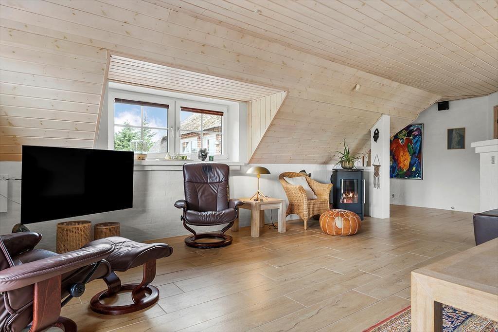 Ein großes Naturgrundstück, ein Aktivitätsraum mit Billardtisch und ein Wellnessbad mit Spa und Sauna – das sind nur einige der Dinge, die das Urlaubsleben in diesem gemütlichen, reetgedeckten Ferienhaus versüßen. Das Haus liegt wunderschön am Frans Julius Vej, in den Südlichen teil von Søndervig.