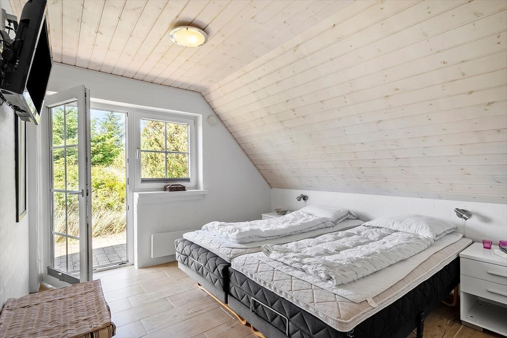 Frans Julius Vej 44 ist eine ruhige und ungestörte Adresse, da das Haus am Ende einer kleinen, abgesperrten Nebenstraße liegt. Ein täglicher Strandspaziergang liegt auf der Hand, wenn man so nah an der Westküste wohnt, und bei entsprechendem Wetter ist es natürlich auch wunderbar, morgens, mittags und abends in den Wellen der Nordsee planschen zu können. Vom Sommerhaus aus ist es auch nicht weit zum Ringkøbing-Fjord – unter anderem zum Bagges Dæmning, den Sie überqueren können, wenn Sie eine Radtour nach Ringkøbing oder zu den vielen unterhaltsamen Aktivitäten im „Adventure Park“ unternehmen möchten. In Søndervig gibt es auch jede Menge Spaß im gemütlichen Stadtzentrum, und es gibt sowohl einen Wasserpark, einen Golfplatz als auch ein jährliches Sandskulpturenfestival, sodass für jeden etwas dabei ist.