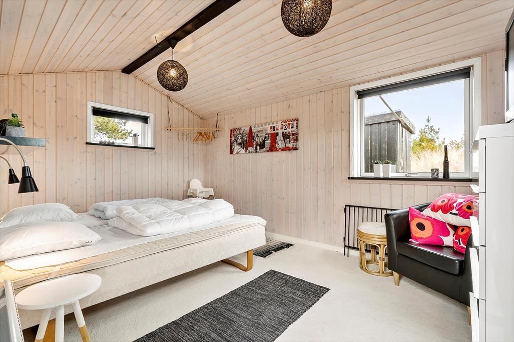 Sie wohnen angenehm zurückgezogen in ruhiger Umgebung am Ende eines kleinen Seitenwegs. Die Lage ist ideal für Urlauber, die sich in vollen Zügen erholen und entspannen möchten. Gleichzeitig erreichen Sie problemlos unterhaltsame Aktivitätsangebote und die prachtvolle Natur. Innerhalb von weniger als einer Viertelstunde spazieren Sie an den Strand. Tennisplätze, eine Minigolfanlage, Eisläden und ein riesiges Badeland erwarten Sie im nur wenige Kilometer entfernten Ortskern des beliebten Badeortes Søndervig. Holmsland Klit lässt sich sehr schön zu Fuß und per Fahrrad erkunden. Surfer, Kajakfahrer und Angler erfreuen sich auf der schmalen Nehrung zwischen Nordsee und Ringkøbing Fjord an guten Bedingungen und freien Entfaltungsmöglichkeiten.