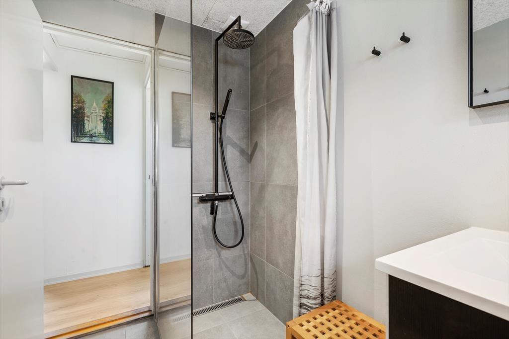 Das Gelände ist nicht nur groß, sondern auch wunderschön angelegt und verfügt über mehrere schöne Bereiche im Garten. Einladend zu einer Erkundungstour für die ganze Familie oder einfach nur zum Verweilen in der ruhigen Umgebung. Der Gartenpavillon steht am südlichen Ende des Grundstücks – direkt an der offenen Feldlandschaft und mit Blick auf den Fjord. Auf der Rasenfläche haben die Jüngsten viel Platz zum Spielen und Ballspielen und auch der Sandkasten auf der eingezäunten Terrasse dürfte ein Hit sein, denn hier können es sich die Erwachsenen bei einer heißen Tasse Kaffee ganz in der Nähe gemütlich machen. Auf der Terrasse gibt es außerdem ein Wildnisbad, ein Beitrag, das Leben im Freien in der Nebensaison zu verlängern und die Sommerabende unterm Sternenhimmel absolut magisch zu machen.