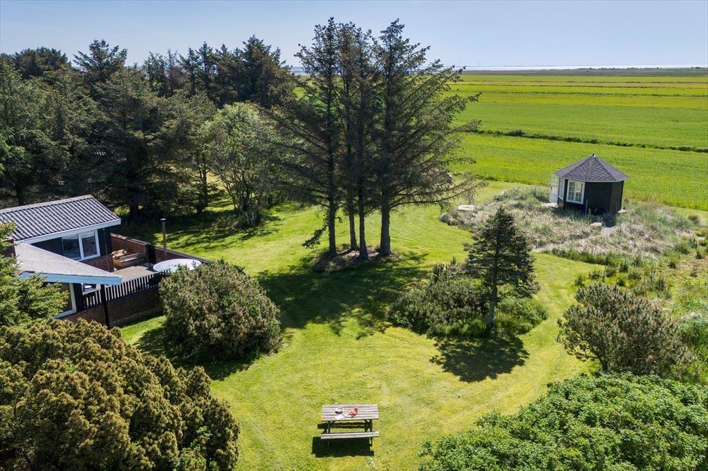Wildnisbad - Der gute Sessel neben dem Ofen - Oder der Gartenpavillon mit Blick auf Felder und Fjord? Es könnte schwierig werden, Ihren Lieblingsplatz in diesem gemütlichen Ferienhaus zu wählen, denn hier im Fyrrekrat 2 in Søndervig gibt es viele schöne gemütliche Ecken und sonnige Plätze zur Auswahl.