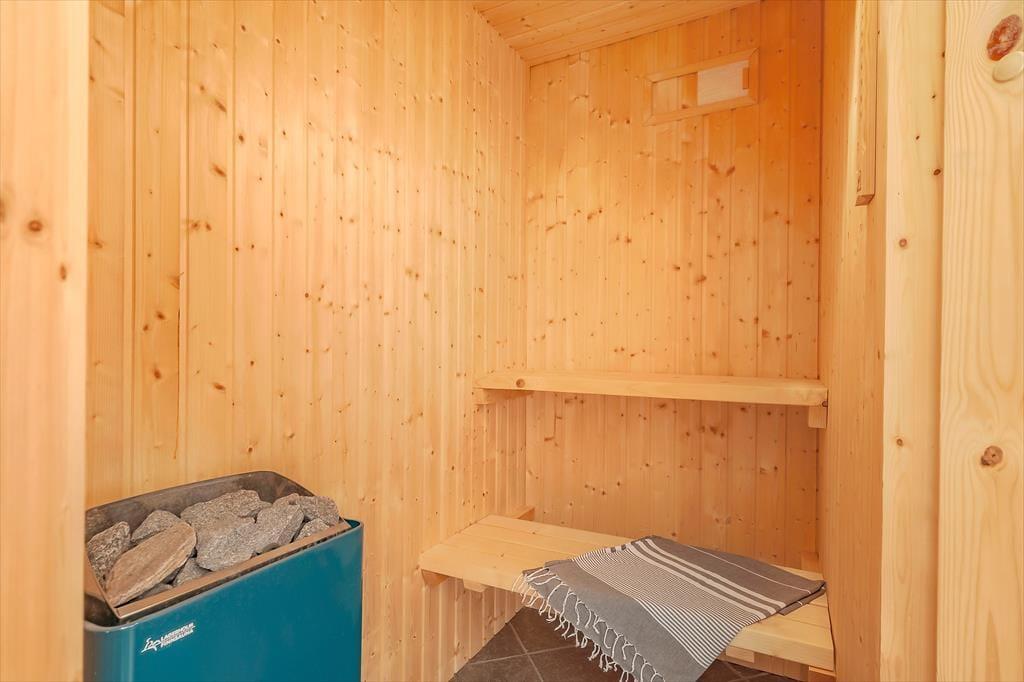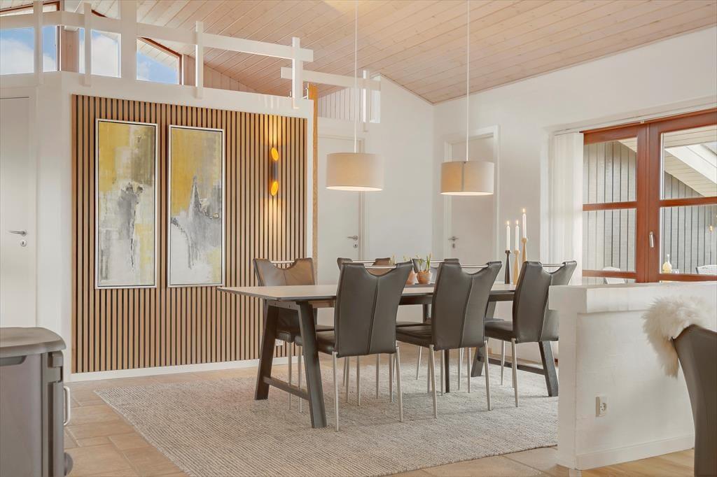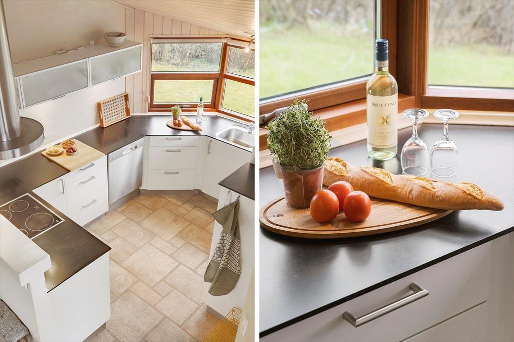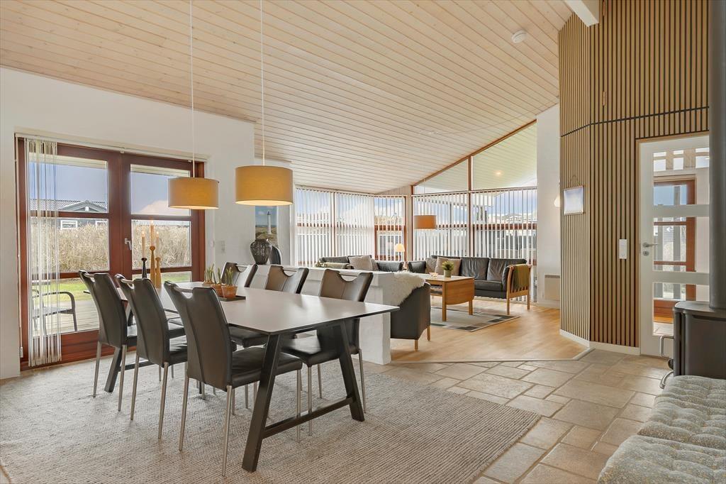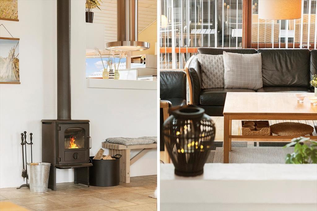 Wenn ihr das Ferienhaus betretet, werdet ihr sofort die warme und einladende Atmosphäre spüren. Der helle und offene Wohnbereich bietet viel Platz für gemeinsame Zeit und Gemütlichkeit – sei es vor dem Kamin an einem kühlen Abend oder beim gemeinsamen Essen in der gut ausgestatteten Essküche. In der Küche habt ihr sowohl Platz als auch die nötige Ausstattung, um leckere Mahlzeiten zuzubereiten. Und der große Esstisch im offenen Wohn-Ess-Bereich ist der ideale Sammelpunkt für Gespräche als auch gemeinsames Kochen. Das Ferienhaus bietet drei komfortable Schlafräume, von denen zwei mit Doppelbetten und das letzte mit zwei Einzelbetten ausgestattet sind. Die Zimmer haben praktische Böden und eingebaute Schränke - leicht könnt ihr eure Sachen während des Urlaubs hier verstauen.