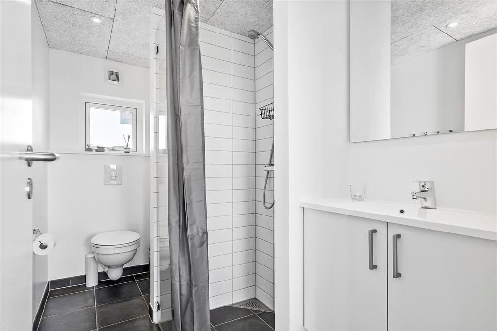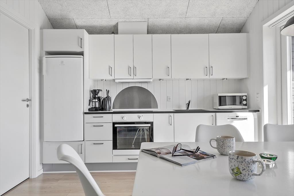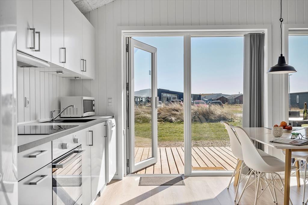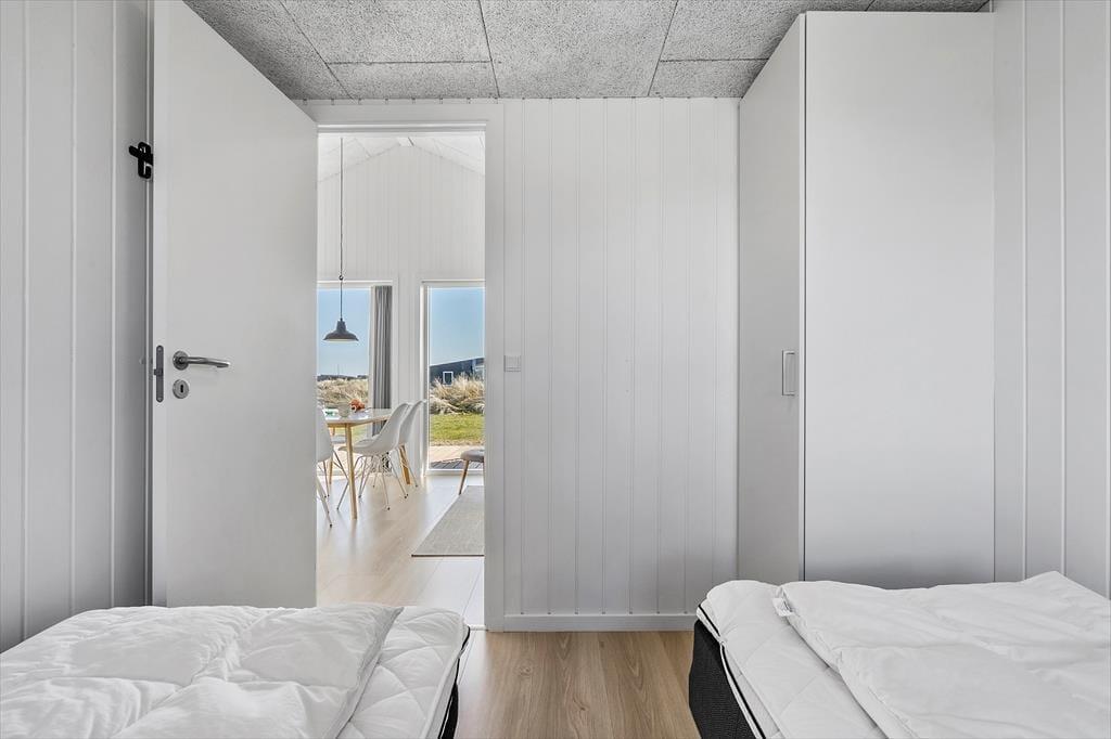 Tritt ein in dieses helle und moderne Ferienhaus und schon hast du den perfekten Rahmen für entspannte Urlaubstage. Die offene Raumgestaltung schafft eine einladende Atmosphäre, in der Beisammensein im Mittelpunkt steht. Das Herzstück des Ferienhauses ist das geräumige Wohnzimmer, in dem große Panoramafenster Licht und Natur hereinlassen. Mach es dir mit einem guten Buch auf dem Sofa gemütlich und an kühleren Tagen ist es schön, die wohlige Wärme des Raumes mit eine leckere Tasse Tee zu genießt. Nach einem Tag am Strand kannst du in der gut ausgestatteten Küche ein wohlverdientes Abendessen zubereiten und gemeinsam am Esstisch können lange Gespräche geführt oder Brettspiele gespielt werden. Die angenehmen Betten in den einladenden Schlafzimmern sorgen für eine erholsame Nachtruhe, sodass du ausgeruht und bereit für neue Urlaubserlebnisse erwachst. Für das weitere Wohlbefinden lädt das Badezimmer zu einer erfrischenden Dusche ein. Ebenso können Sand und Salz abspült werden und dein Körper sich völlig unter warmem Wasser entspannen.
