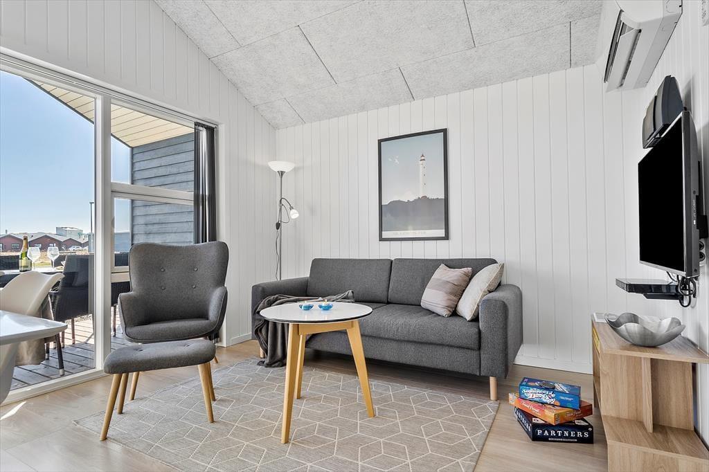 Schon mit dem Duft von Salzwasser in der Luft aufzuwachen – das ist ein Urlaub an dieser wunderschönen Ferienhausadresse am Havstien 203. Hier wohnst du nur wenige Gehminuten vom breiten Sandstrand und dem pulsierenden Ferienleben in Søndervig entfernt. Dies ist der perfekte Ort für einen Urlaub, in dem du Strandspaziergänge, Shopping und gemütliche Cafébesuche mit slow living und Entspannung in komfortabler Umgebung kombinieren kannst.