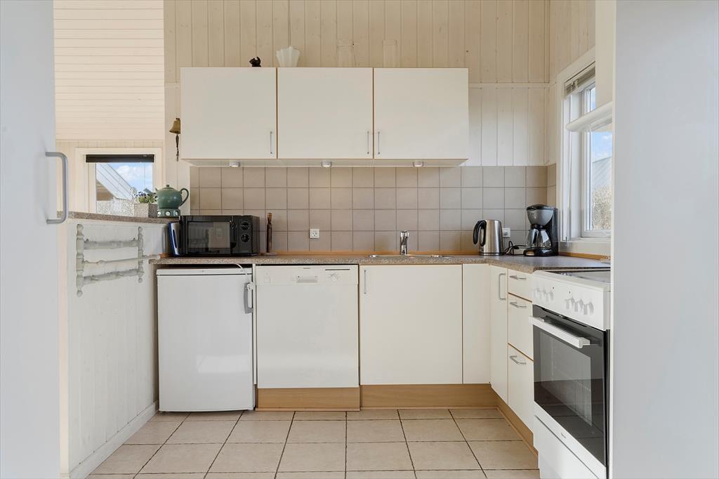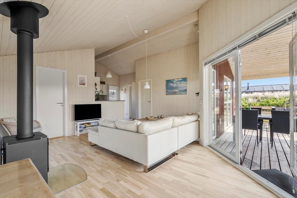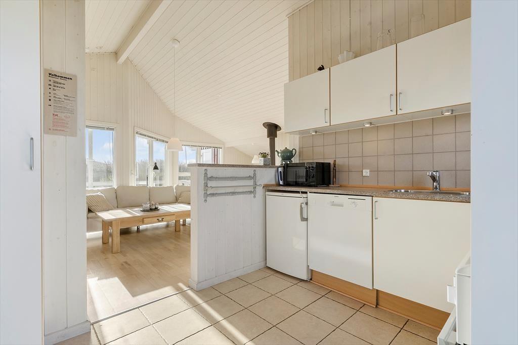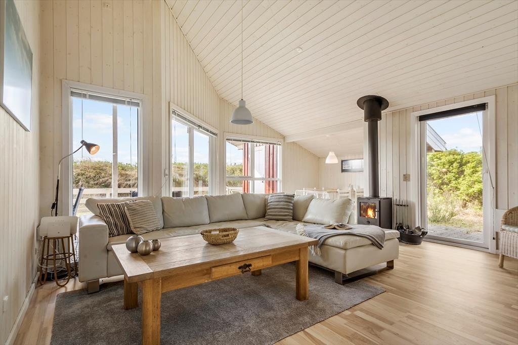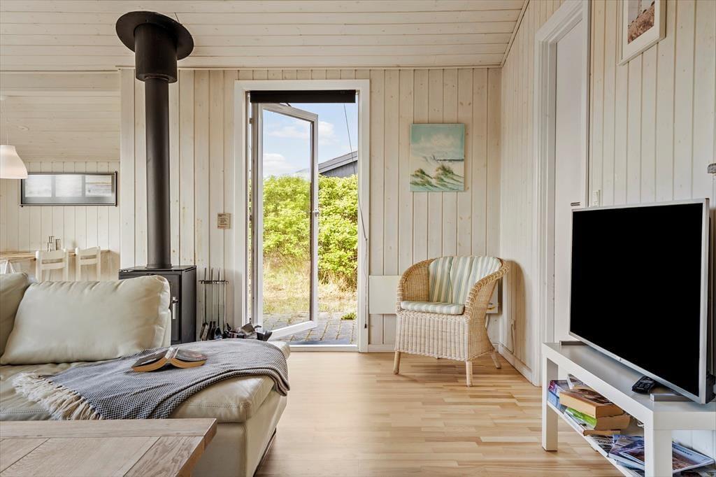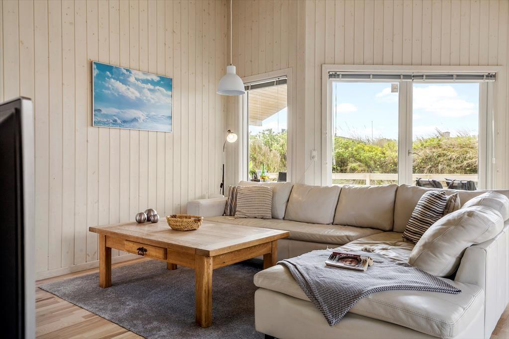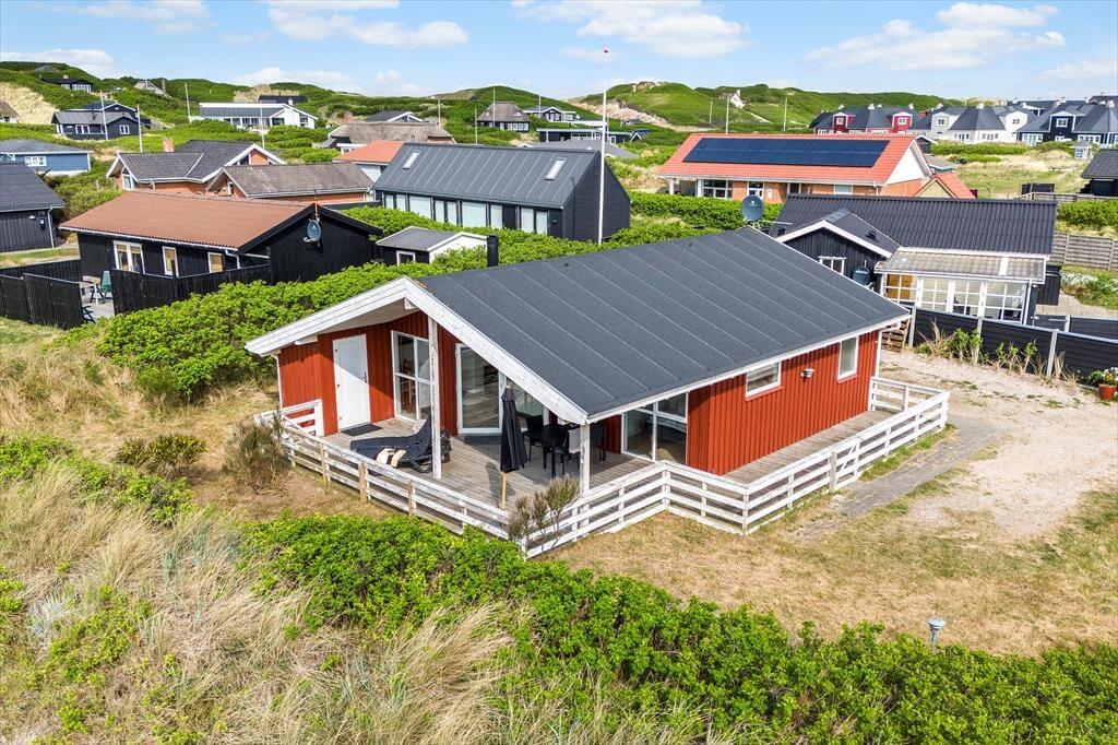 Willkommen in diesem hellen und freundlichen Ferienhaus mit guter Raumaufteilung für vier Personen. Das Haus liegt mitten im Zentrum von Søndervig an der kleinen Schotterstraße Sletten, wo die Nordsee so nah ist, dass Sie bereits nach drei Minuten Fußweg am Meer sind.