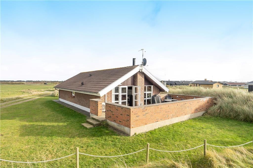 Rund um das Grundstück in Richtung der Nachbarhäuser verläuft eine Düne, so dass Sie sich ungestört im Haus aufhalten können. Eine große Liegewiese mit Platz für Ballspiele und Spiel. Das Haus hat eine große geflieste Terrasse nach Südwesten mit Gartenmöbeln, Sonnenliegen und einem Grill. Nach Nordosten können Sie die Aussicht über die Grünanlage und weiter zum Golfplatz Søndervig genießen, wo Sie das Spiel live verfolgen können.