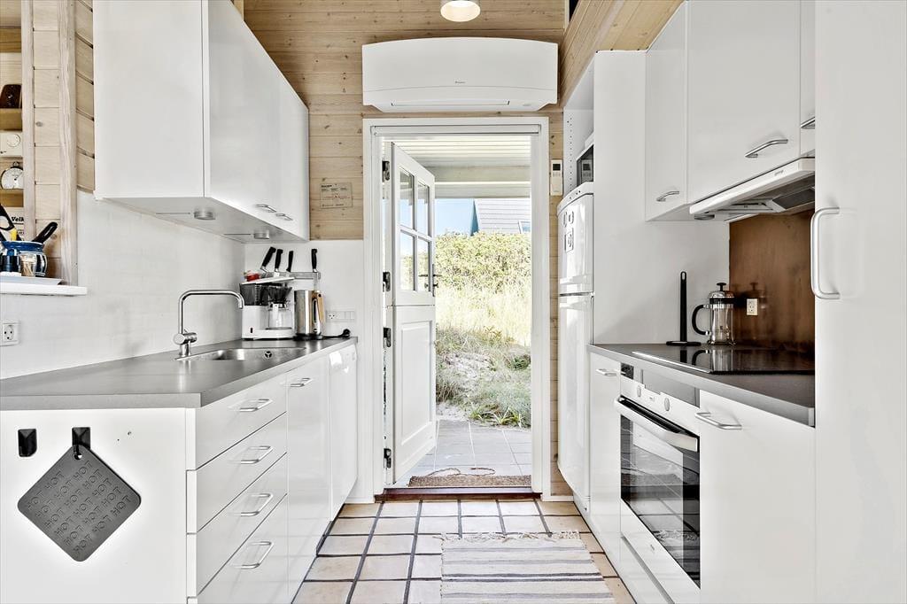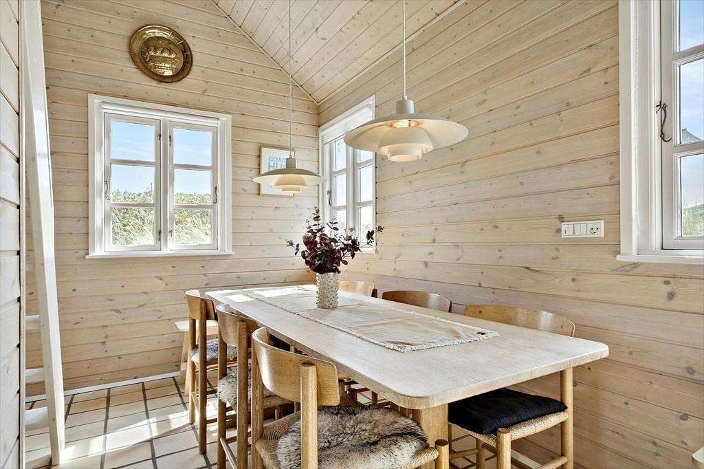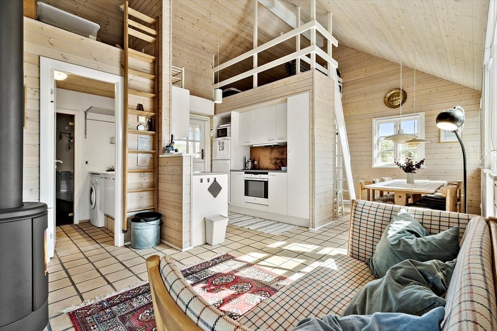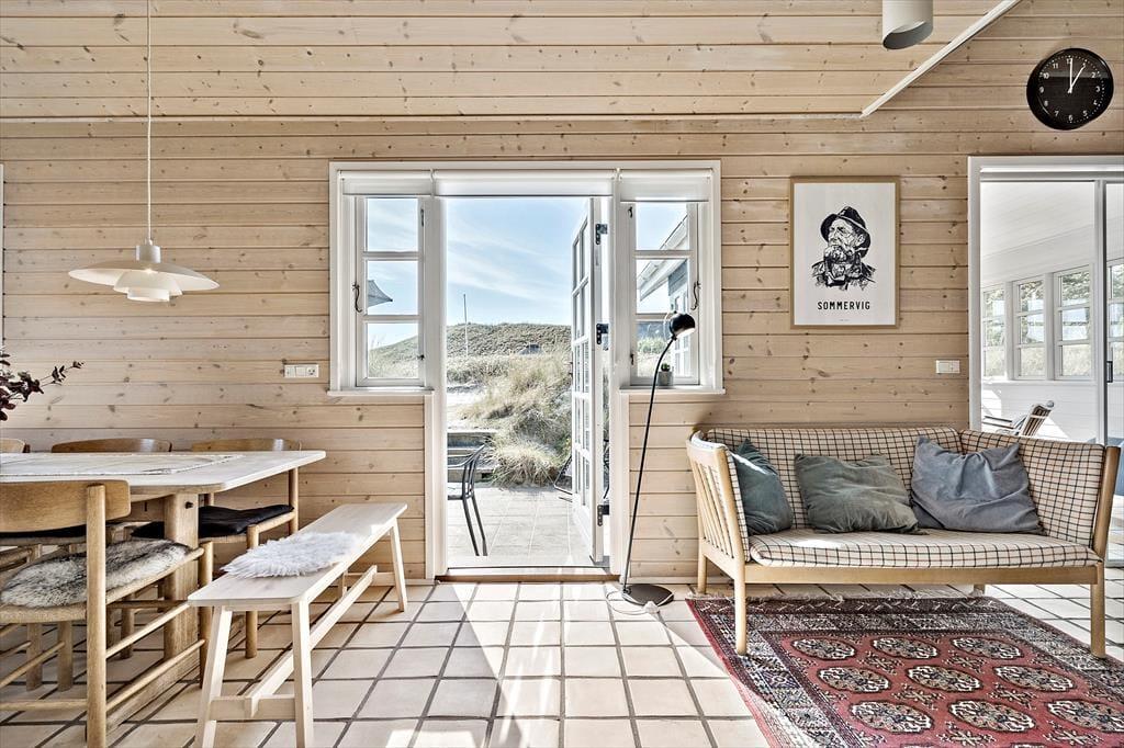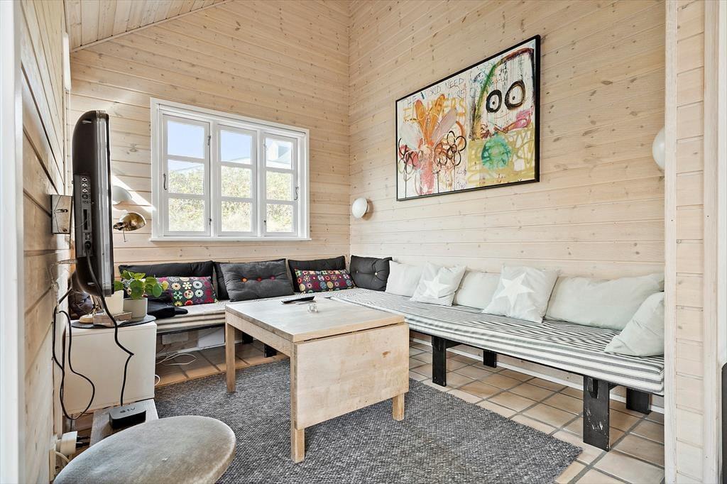 Funktionale, gut ausgestattete Küche in offener Verbindung mit dem Ess- und Wohnbereich. Das Wohnzimmer ist mit bequemen Möbeln, Kaminofen wie auch Flachbild-TV mit dänischen und deutschen Sendern eingerichtet und ein Plaustation3. Vom Wohnzimmer aus haben Sie Zugang zu dem tollen Wintergarten, von dem aus die Natur das ganze Jahr genossen werden kann.