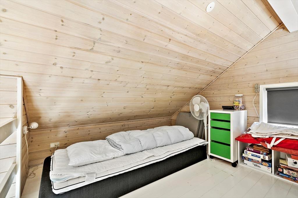 Es gibt zwei Schlafzimmer mit Stauraum. Eines davon mit Doppelbett und Terrassenzugang, das andere mit Doppelstockbett. Im ersten Stock befindet sich ein Dachboden mit Matratzen, auf dem die Kinder spielen und sich vergnügen können, ein Buch lesen oder einfach sich zurückziehen. Das helle Badezimmer verfügt über Dusche, WC, Waschmaschine und Sauna.