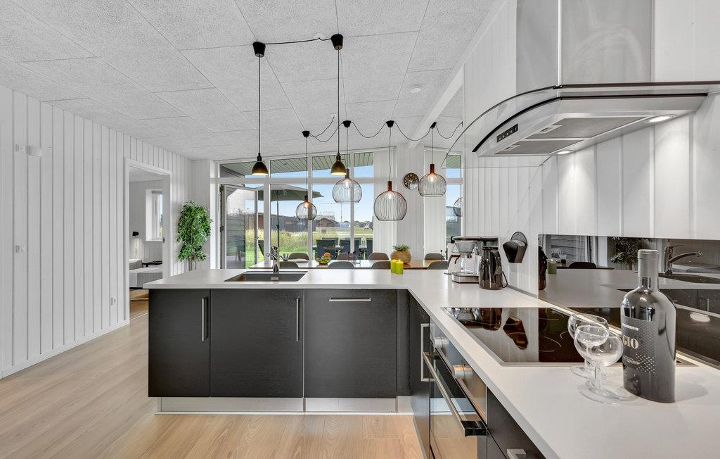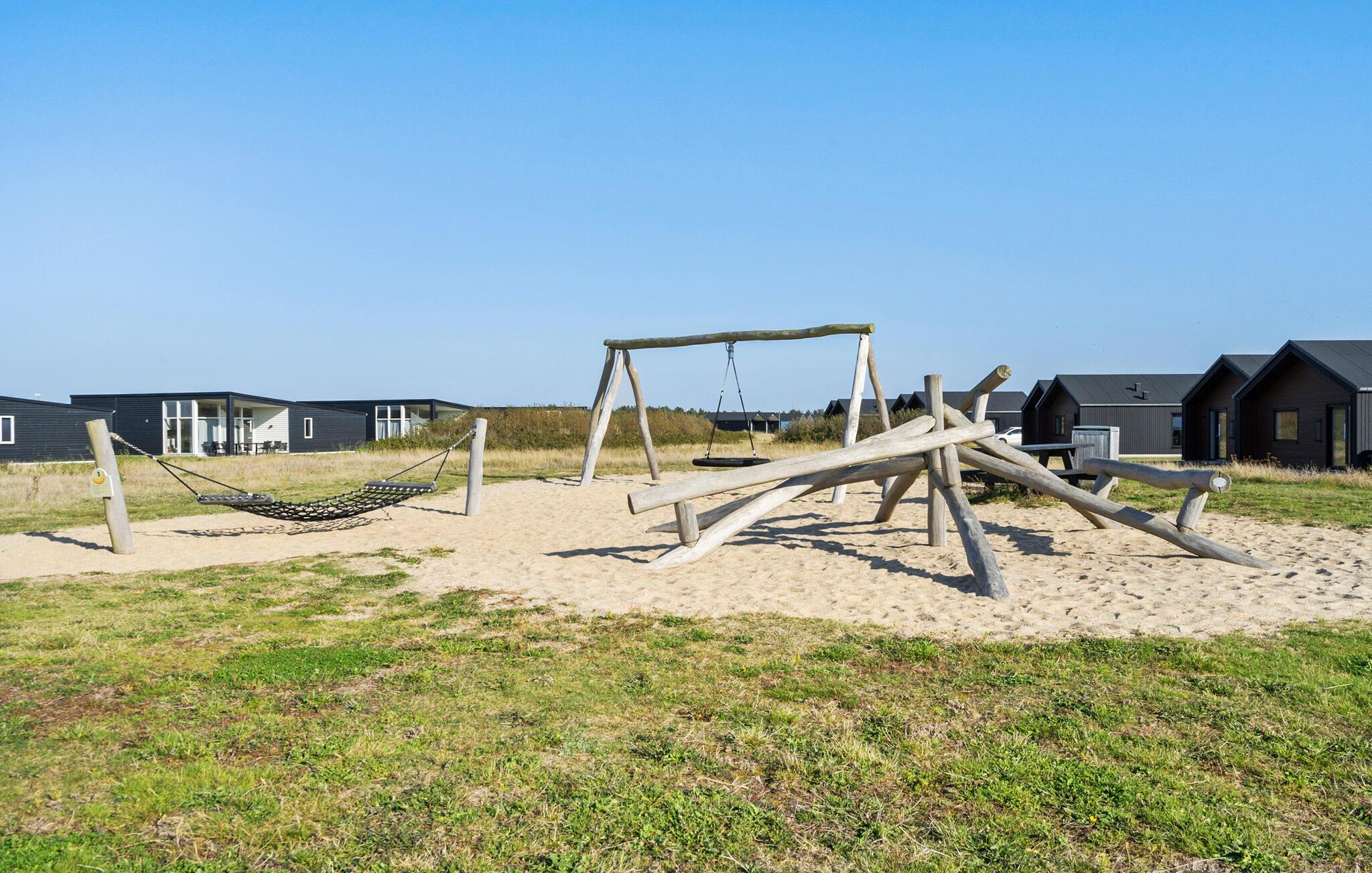 In einem schönen Naturgebiet mit Dünen am Horizont liegt dieses besonders gut eingerichtete Ferienhaus. Es ist Teil der ersten Ausbaustufe des Ferienparks Søndervig. Die Häuser liegen nahe dem Zentrum der Stadt, einer Stadt mit dem einfachsten Zugagn zur Nordsee. Deshalb treffen Sie hier auch auf einen traditionsreichen Urlaubsort, hier fühlen Sie sich bestimmt willkommen. Denn die Unternehmer wissen, was von den Gästen gewünscht wird, sei es beim Essen, Kaffee trinken oder Einkaufen. Auch auf Wellness müssen Sie hier nicht verzichten. Kommen Sie einfach zum Verwöhnt werden hierher. Nicht weit vom Park liegt Ringkøbing, die alte Stadt zählt zu den gemütlichsten in Dänemark. Rote Ziegeldächer, Sprossenfenster und enge Gassen erwarten Sie bei dieses Häusern aus dem Anfang des 19. Jahrhunderts. Auch im Hafen finden Sie Flair und viel Sonne, bei einem Spaziergang auf der Mole können Sie den Fjord überblicken. Sehenswert ist auch Hvide Sande, ein aktiver Fischereihafen mit gesprächigen Fischern, wenn Sie sie beim Entladen des Fischfangs im Hafen antreffen. Auf beiden Seiten der Stadt gibt es Freizeitangebote an und auf dem Wasser. Hier treffen Sie auf viel Natur, auf viel Platz für alle und jede Generation fühlt sich hier wohl. Lebensgenießer und sportliche Urlauber werden hier gleichermaßen angezogen.