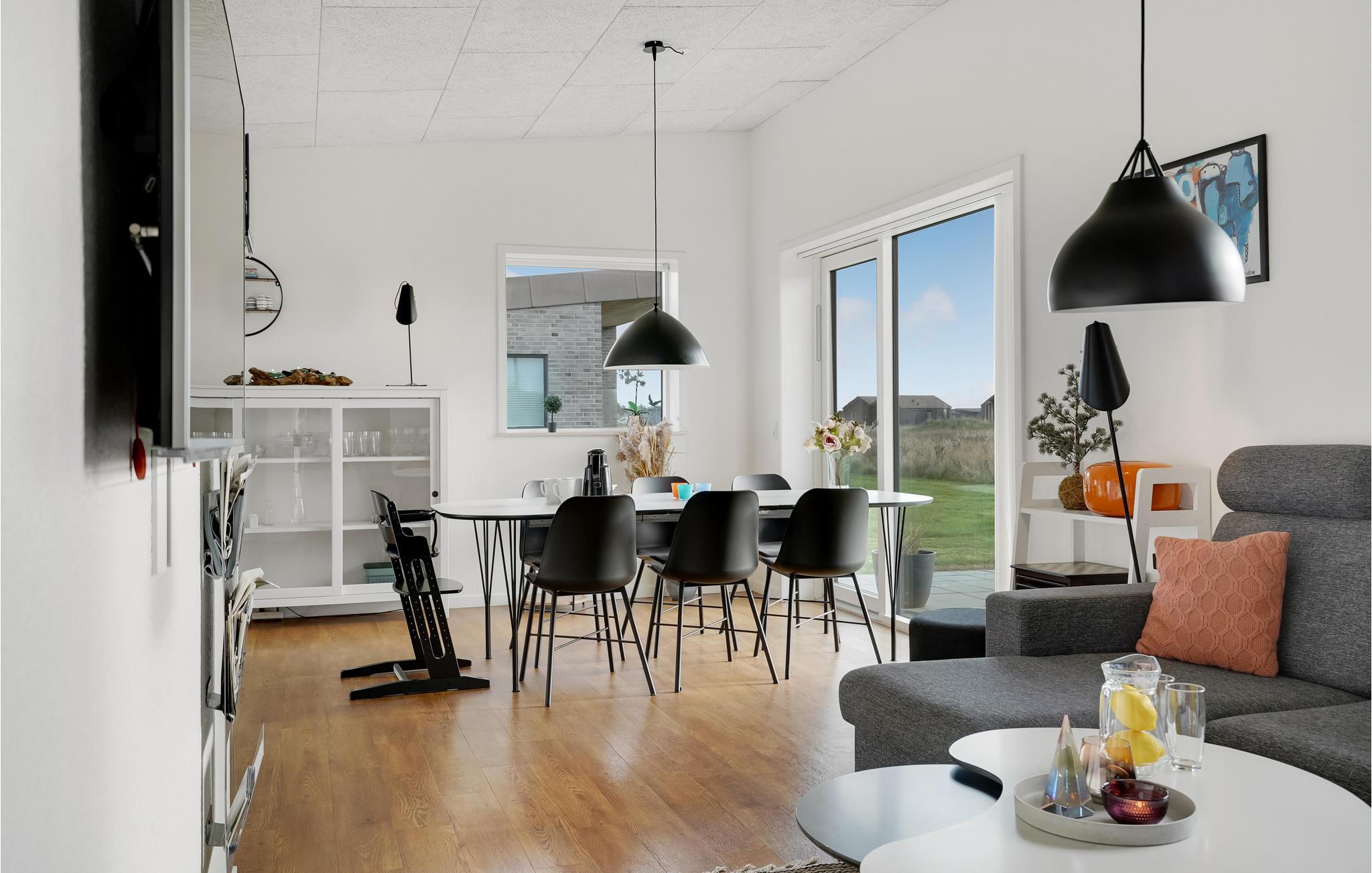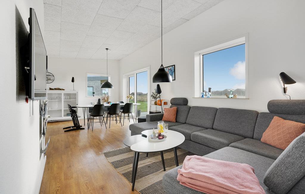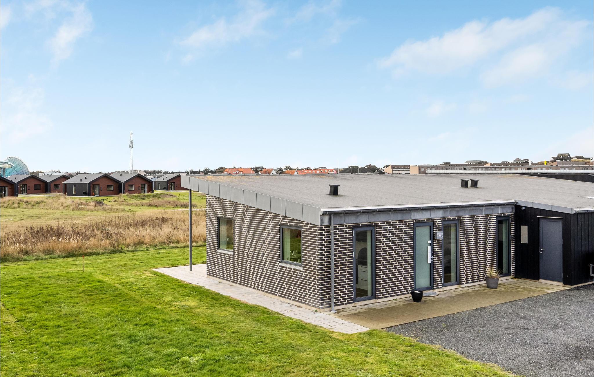 Modernes Ferienhaus in Søndervig mit Blick auf Dünen und Nähe zur Nordsee, ideal für entspannte Urlaubstage.