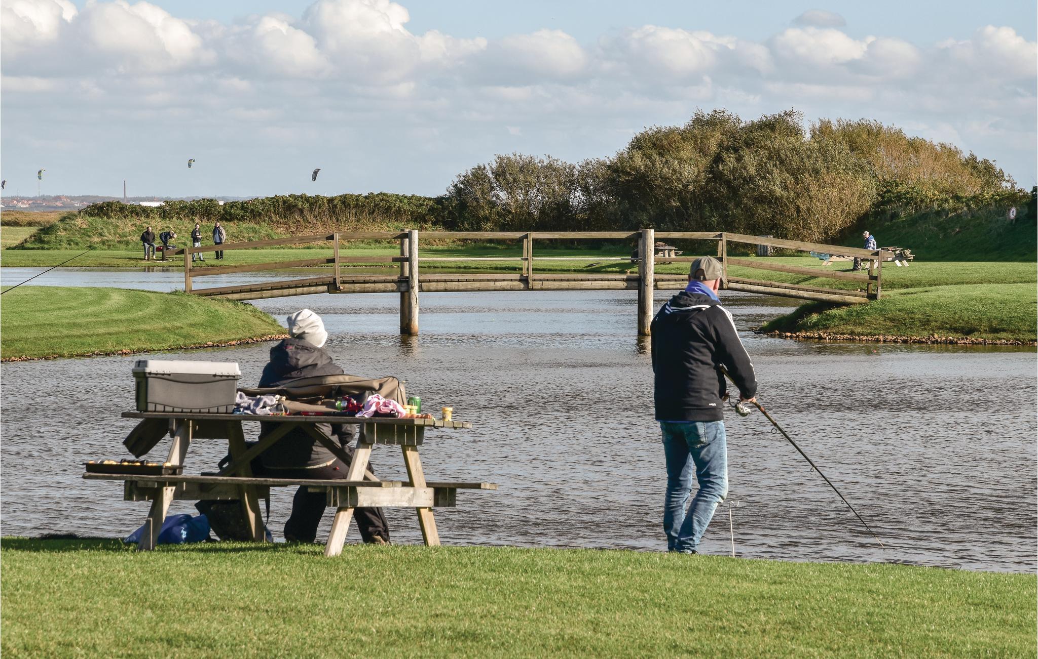 Sie wohnen im, in der ersten Ausbaustufe verwirklichten Ferienpark Søndervig. Die Häuser liegen nahe dem Zentrum der Stadt, einer Stadt mit dem leichtesten Zugang zur Nordsee. Deshalb ist die Stadt ein renommierter Badeort, der viel dafür tut, dass sich seine Gäste wohl fühlen. Die Unternehmer wissen, was sie tun müssen, um alle Wünsche der Gäste zu erfüllen. So können Sie hier gut einkaufen, essen, Kaffee trinken oder mit Wellness verwöhnt werden. Hier vermissen Sie wirklich Nichts. Nicht weit vom Ferienpark liegt auch das alte Ringkøbing. Auch dort fühlen Sie sich schnell willkommen, denn der Ort ist einer der am besten erhaltenen von Dänemark. Hier machen Sie eine Zeitreise, wenn Sie die alten, niedrigen Häuser, die roten Ziegeldächer und die Sprossenfenster sehen. Das Zentrum ist seit dem 19. Jahrhundert unverändert und eine gute Stelle, den Stadtrundgang zu beginnen. Sie machen einen behaglichen Spaziergang durch die Gassen mit Kopfsteinpflaster und netten Boutiquen. Im Hafen herrscht eine besondere Atmosphäre. An der Mole genießen Sie die Sonne und einen schönen Blick auf den Fjord. Auch Hvide Sande ist schön zu besuchen. Der Hafen ist aktiv, viele Fische werden hier angelandet, aber trotzdem werden Sie immer einen Fischer finden, der gerne zu einem Schnack bereit ist. Zu beiden Seiten der Stadt werden Ihnen Aktivitäten am und auf dem Wasser geboten. Hier spüren Sie viel Natur, hier ist ungemein viel Platz für alle, Junge, Alte, Surfer, Genießer des Lebens und aktive Sportler.