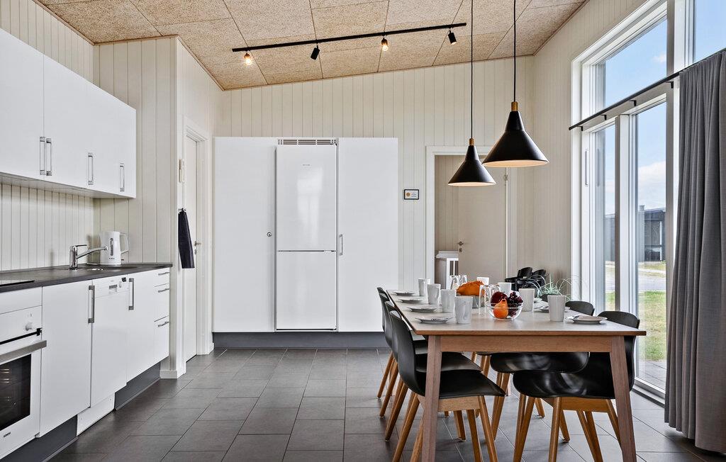 Genießen Sie Ihren Aufenthalt in diesem komfortablen Ferienhaus, das ideale Voraussetzungen für einen erholsamen Familienurlaub bietet. Erleben Sie eine Atmosphäre, in der Funktionalität und Gemütlichkeit aufeinandertreffen. Der Wohnbereich ist offen gestaltet und verbindet Essküche, Essplatz und Sofaecke zu einem einladenden Raum. Machen Sie es sich auf der großen Couch gemütlich oder treffen Sie sich am langen Esstisch zu gemeinsamen Spielen. Bereiten Sie Ihre Lieblingsgerichte in der modernen Küche zu und profitieren Sie dabei von der hellen und freundlichen Atmosphäre dank großer Fensterfronten.