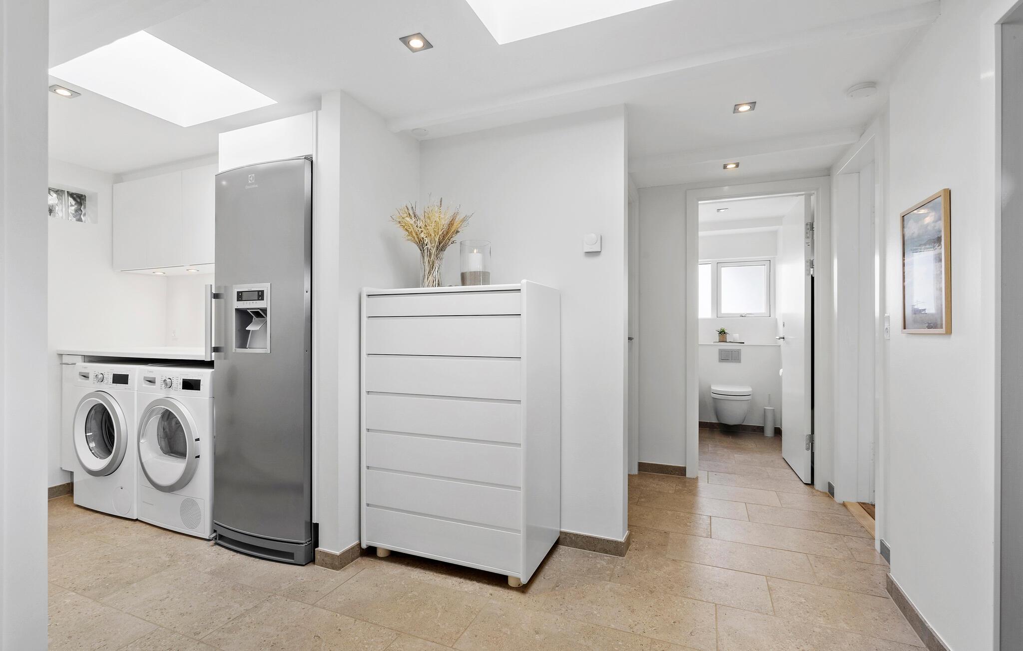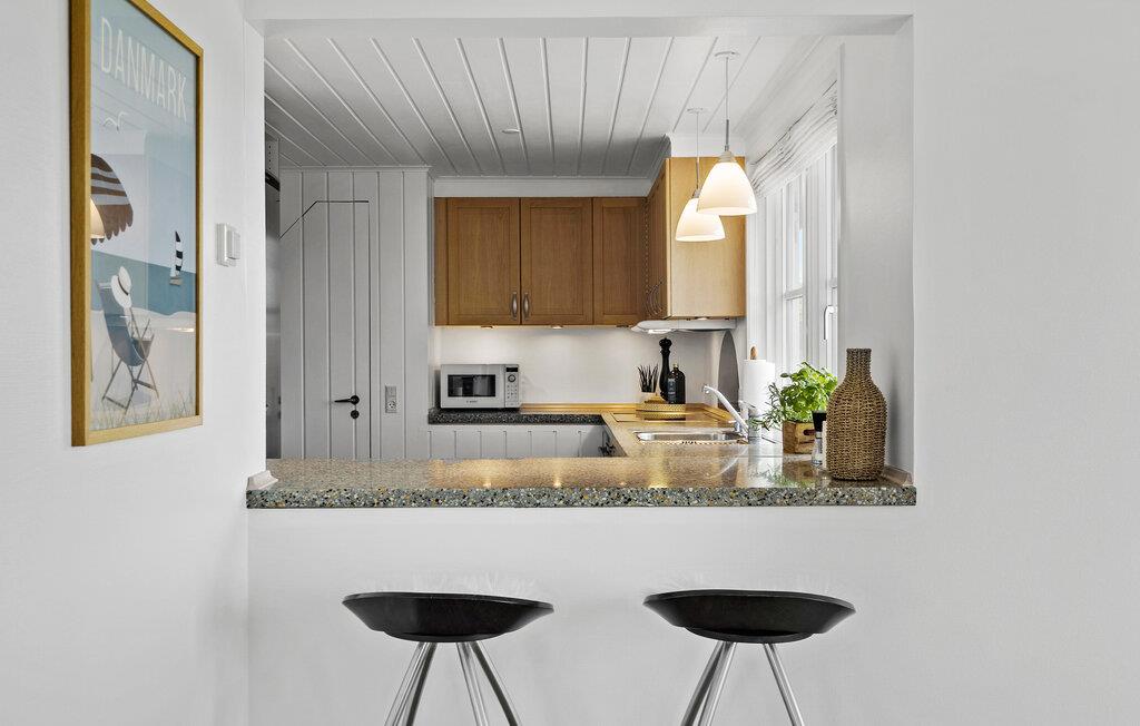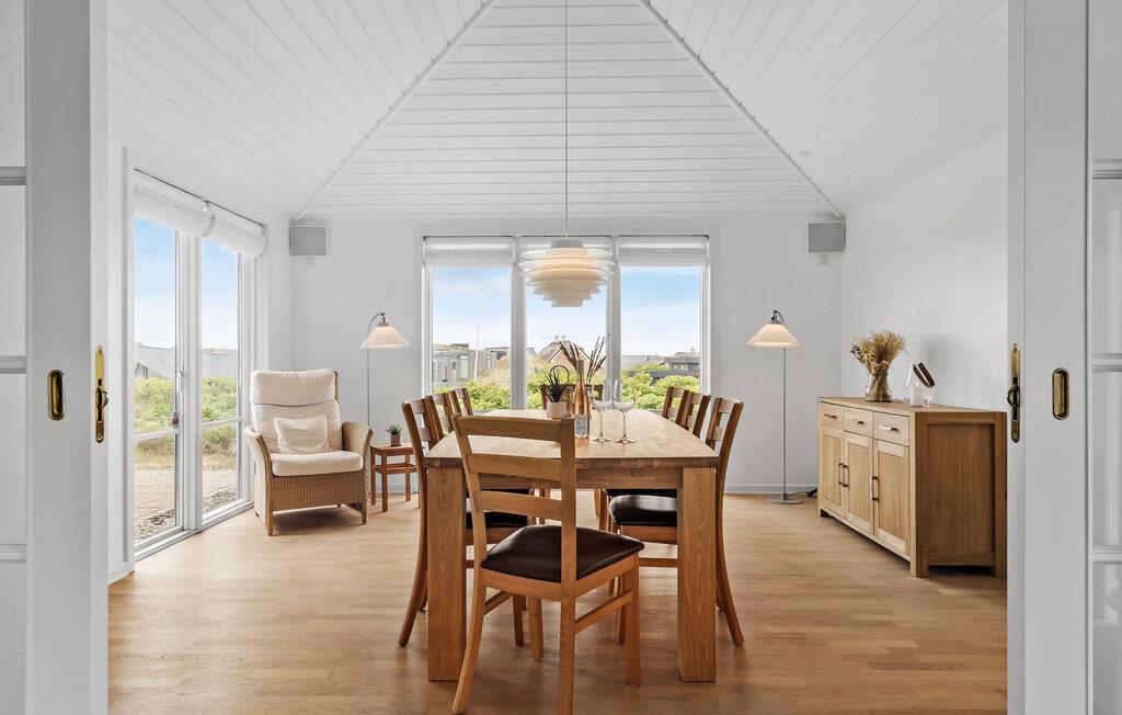 Freuen Sie sich auf erholsame Tage in diesem charmanten Ferienhaus in Søndervig. Die idyllische Lage in Küstennähe und die gemütliche Atmosphäre des Hauses machen es zum idealen Rückzugsort für eine Auszeit am Meer. Das einladende Wohnambiente besticht durch seine hellen Räume und die stilvolle Einrichtung. Machen Sie es sich auf den bequemen Sofas im geräumigen Wohnzimmer gemütlich und genießen Sie den weiten Blick durch die großen Fenster. Der Kaminofen sorgt an kühlen Abenden für wohlige Wärme. Nutzen Sie die praktische Küche, um köstliche Urlaubsmahlzeiten für die ganze Familie zuzubereiten.