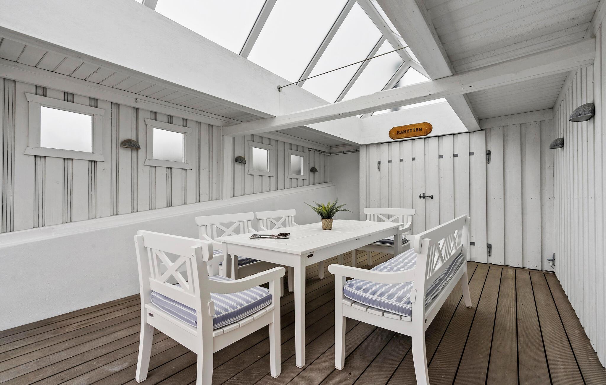 Freuen Sie sich auf gesellige Mahlzeiten an der frischen Luft im geschützten Innenhof mit überdachter Terrasse. Lassen Sie den Tag entspannt mit einem Glas Wein ausklingen, während Sie die Nordseeluft genießen. Das Grundstück ist von Natur umgeben und bietet Ihnen viel Privatsphäre.